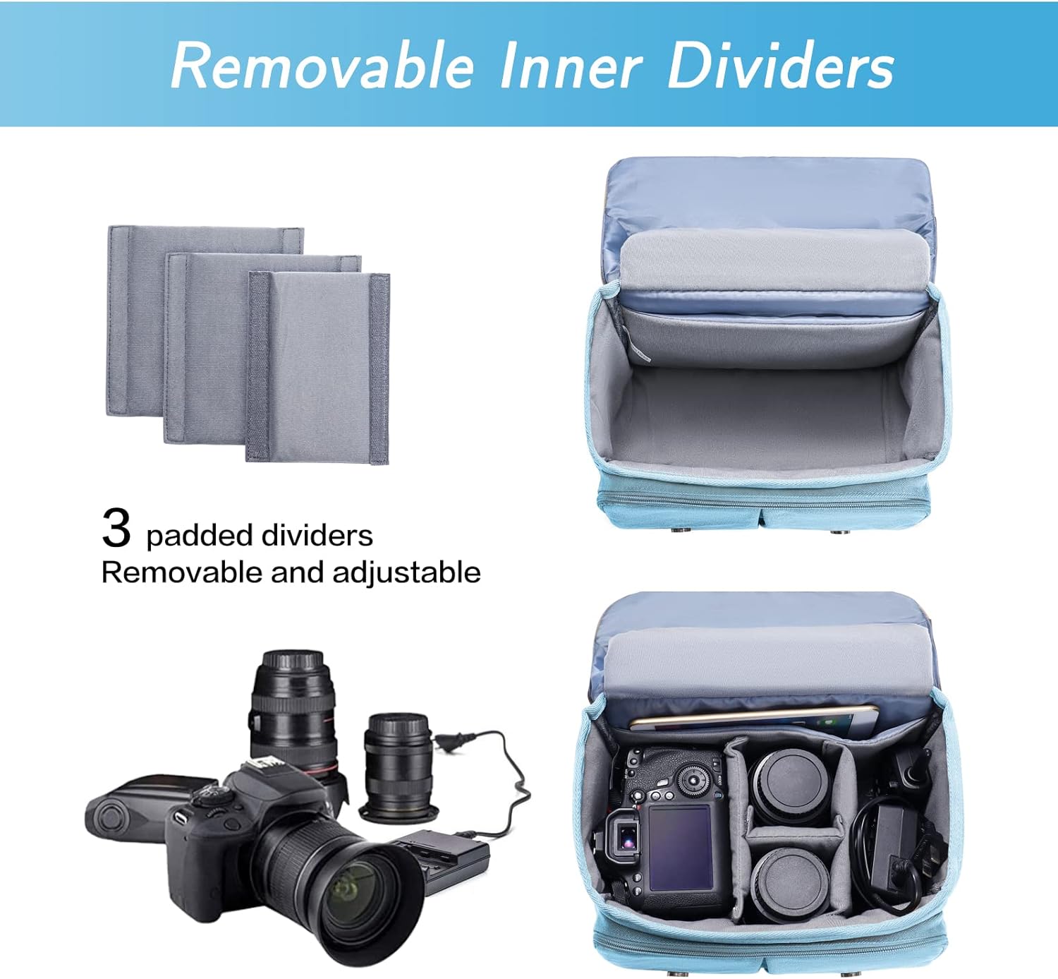 Three removable modular inserts is designed as customized dividers for different cameras, flashes, lens and other camera equipments. Customer can adjust the inner space based on their needs. The soft foam layer surrounded can well protect your camera and accessories from accidental scratches, provide good buffer and protection to your internal stuff against bumps, shock and drops. 1 hidden anti-theft zipper pocket on the back for your phone, wallet and other precious items.