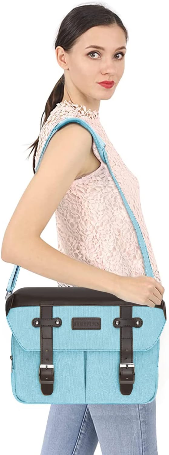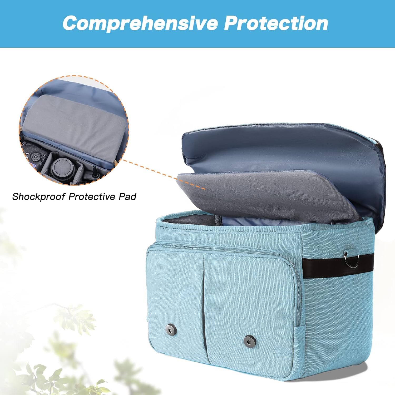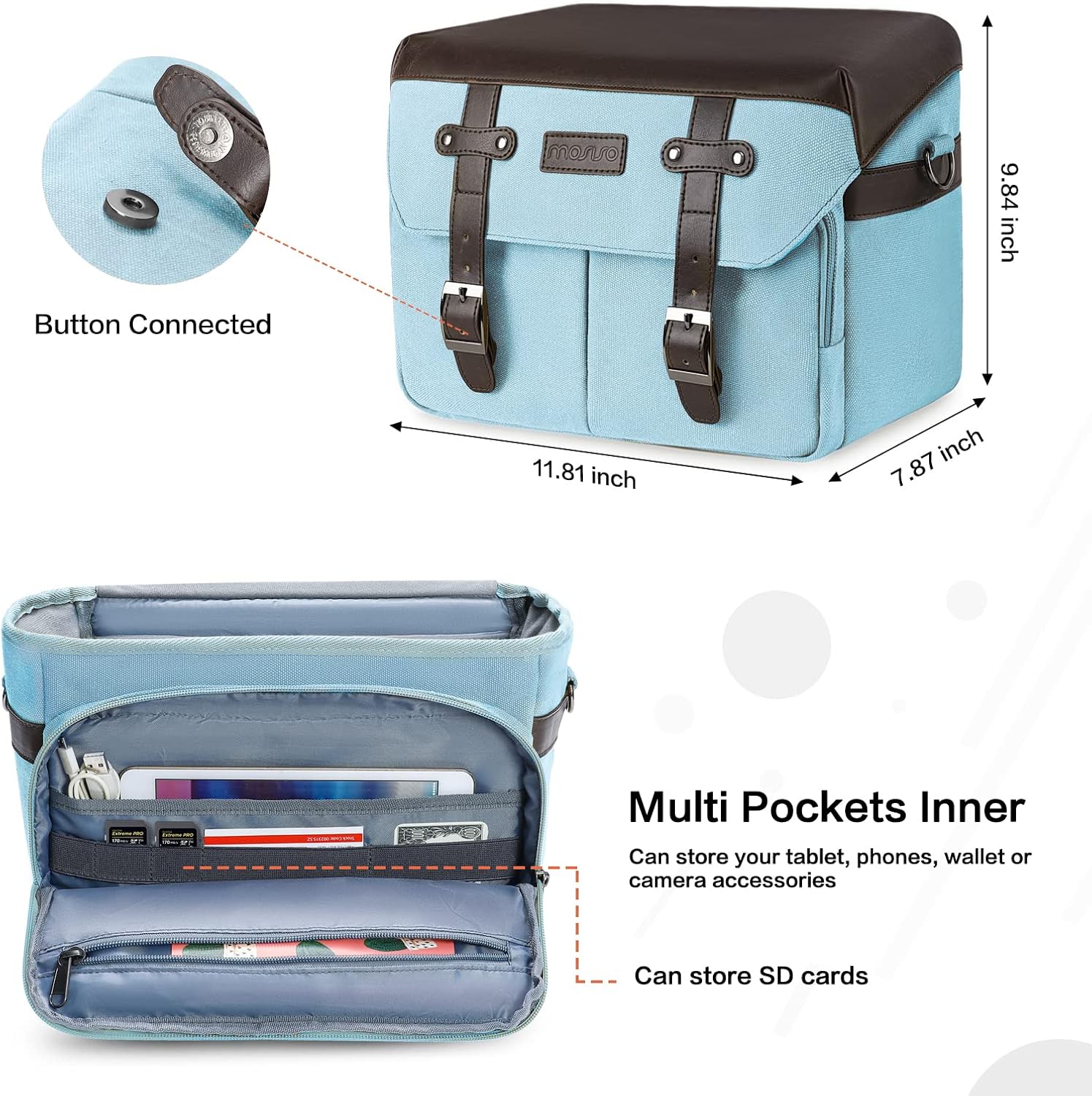 MOSISO Camera Case Crossbody Shoulder Messenger Bag, DSLR/SLR/Mirrorless Photography Vintage PU Leather Flap Gadget Bag with Rain Cover Compatible with Canon/Nikon/Sony Camera and Lens, Air Blue