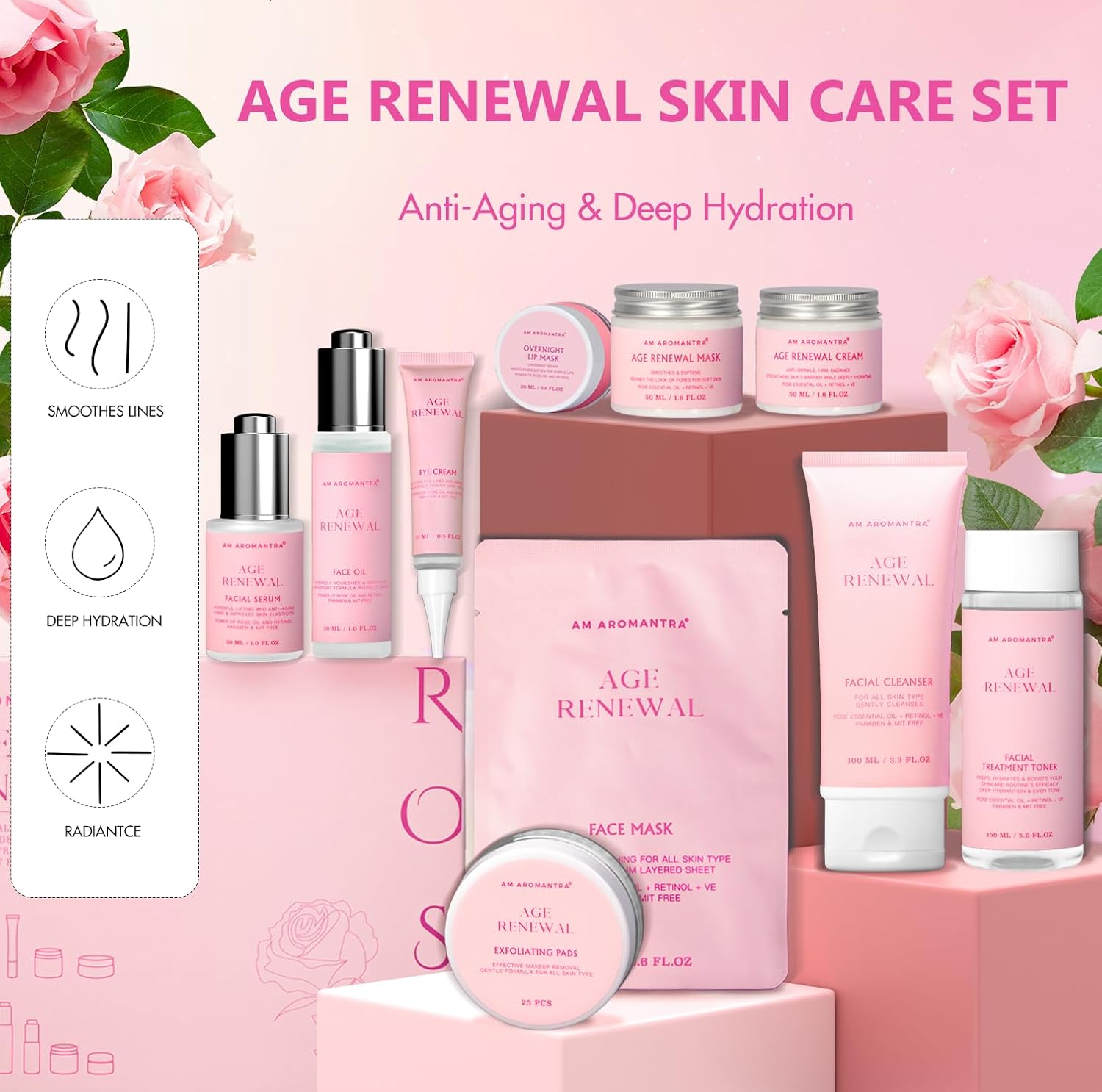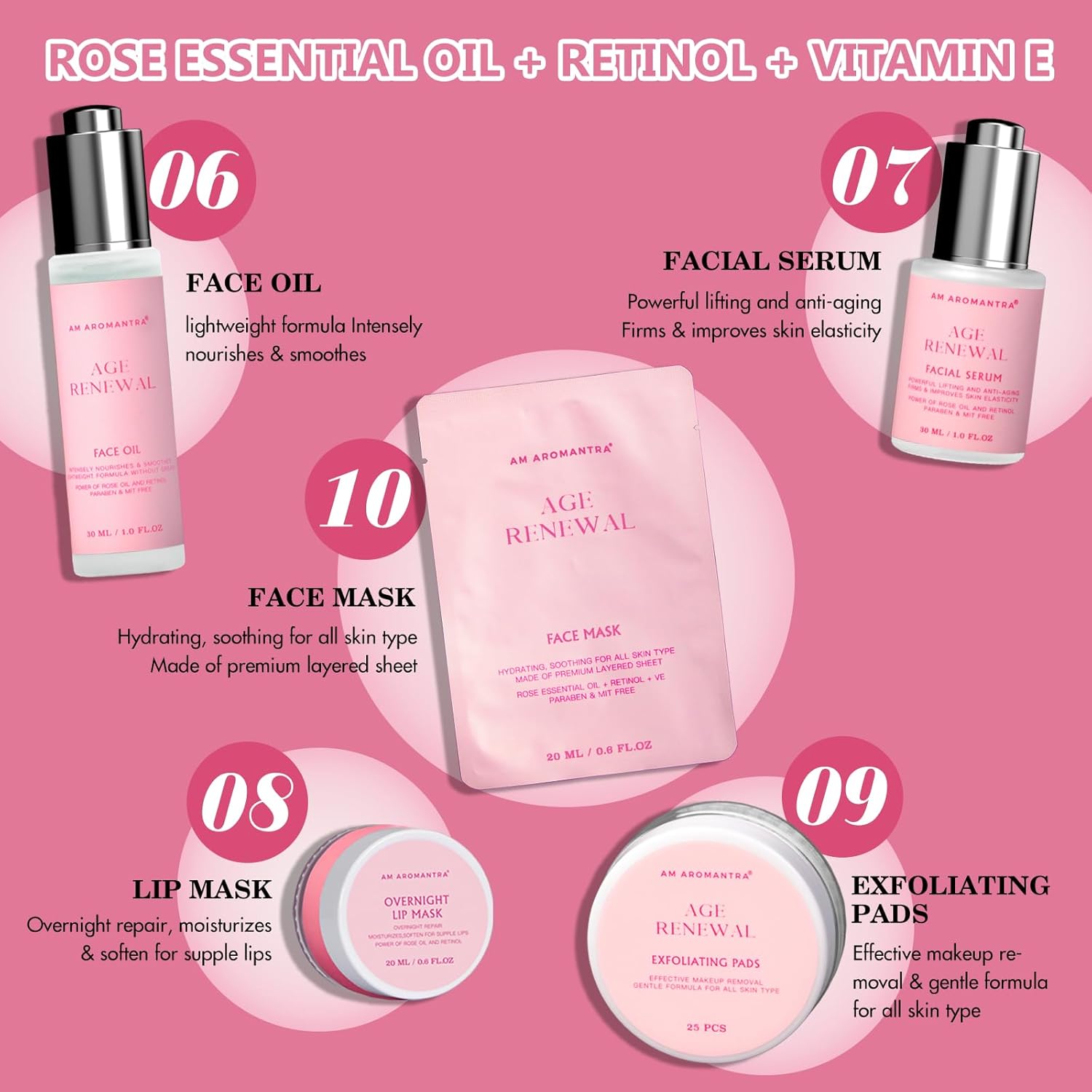 Rose Essential Oil + Retinol + Vitamin E 10-Piece Skincare Set