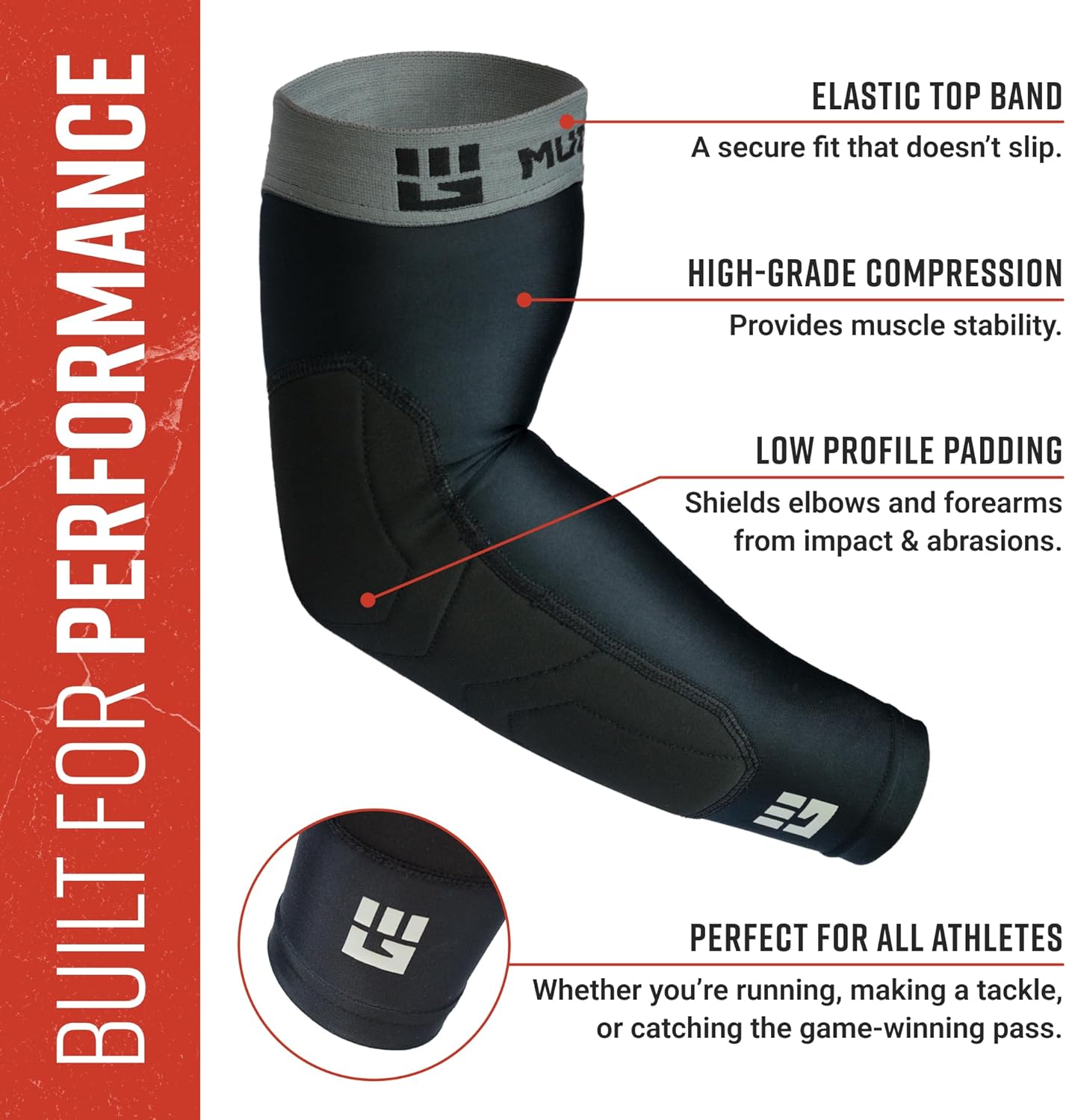 MudGear Padded Arm Sleeves 2-Pack – Men’s, Women’s, Youth – Compression Padded Elbow Protection – OCR, Baseball, and Football