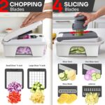 Mueller Pro-Series All-in-One, 12 Blade Mandoline Slicer for Kitchen, Food Chopper, Vegetable Slicer and Spiralizer, Cutter, Dicer, Grater, Kitchen Gadgets Sets with Container, White Sand/Grey