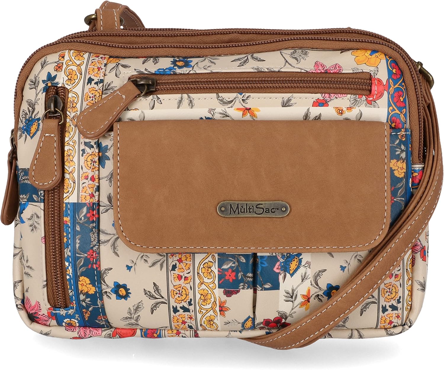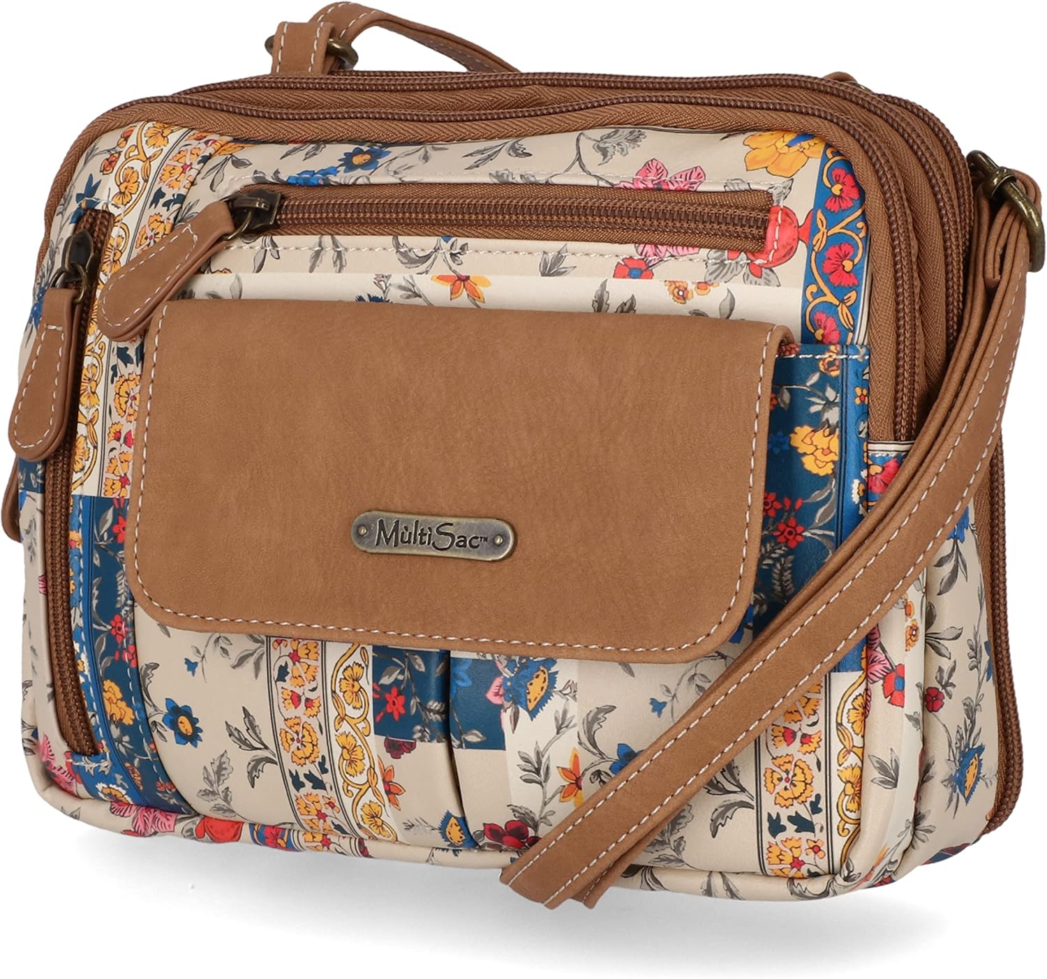 MultiSac Womens Zippy Triple Compartment Crossbody Bag Cross Body