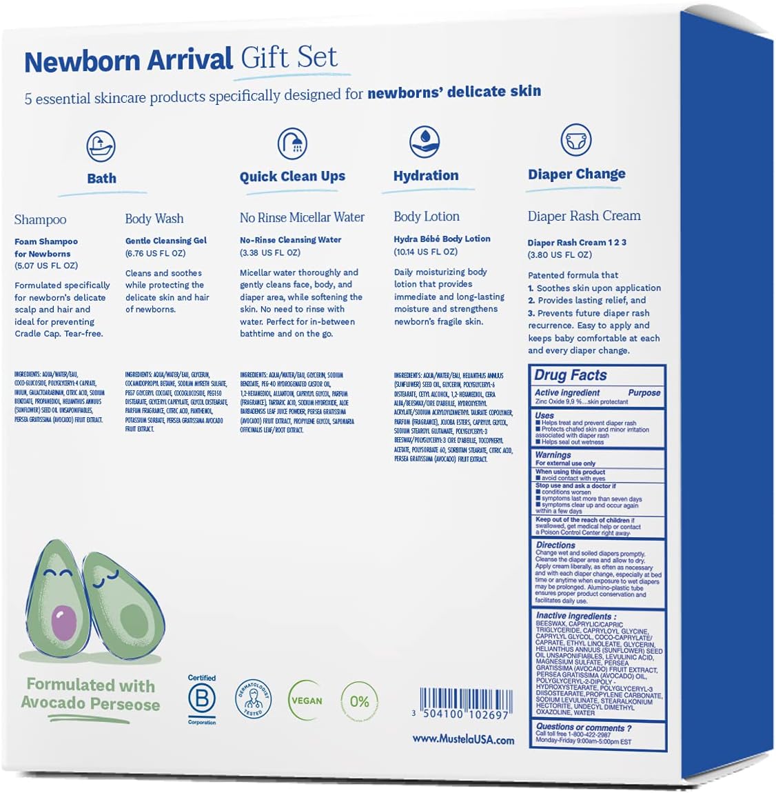 Mustela Newborn Arrival Gift Set – Baby Skincare & Bath Time Essentials – Natural & Plant Based – 5 Items Set