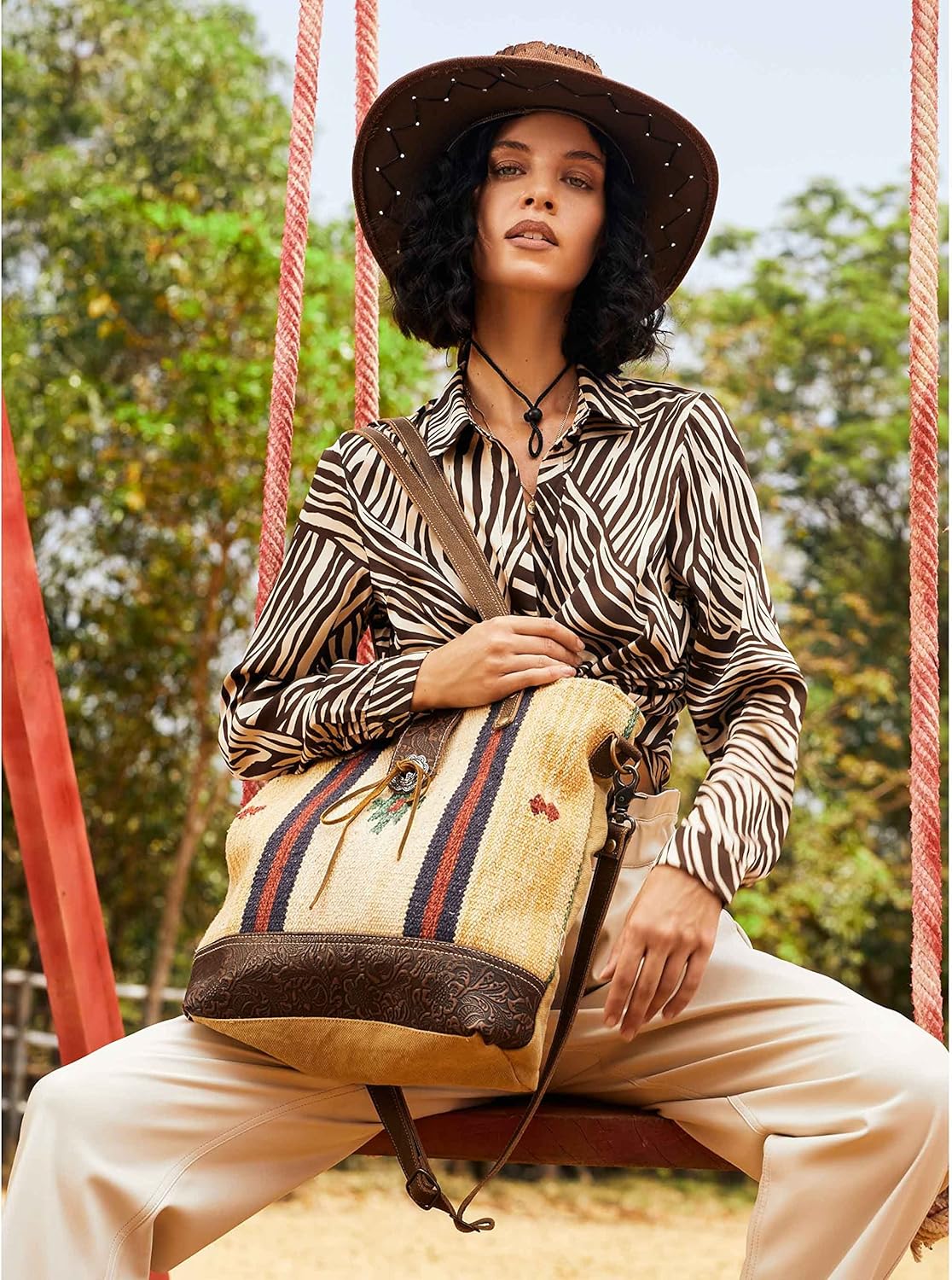 Myra Bag Western Tote Shoulder for Women – Leather Crossbody , Woody Goody