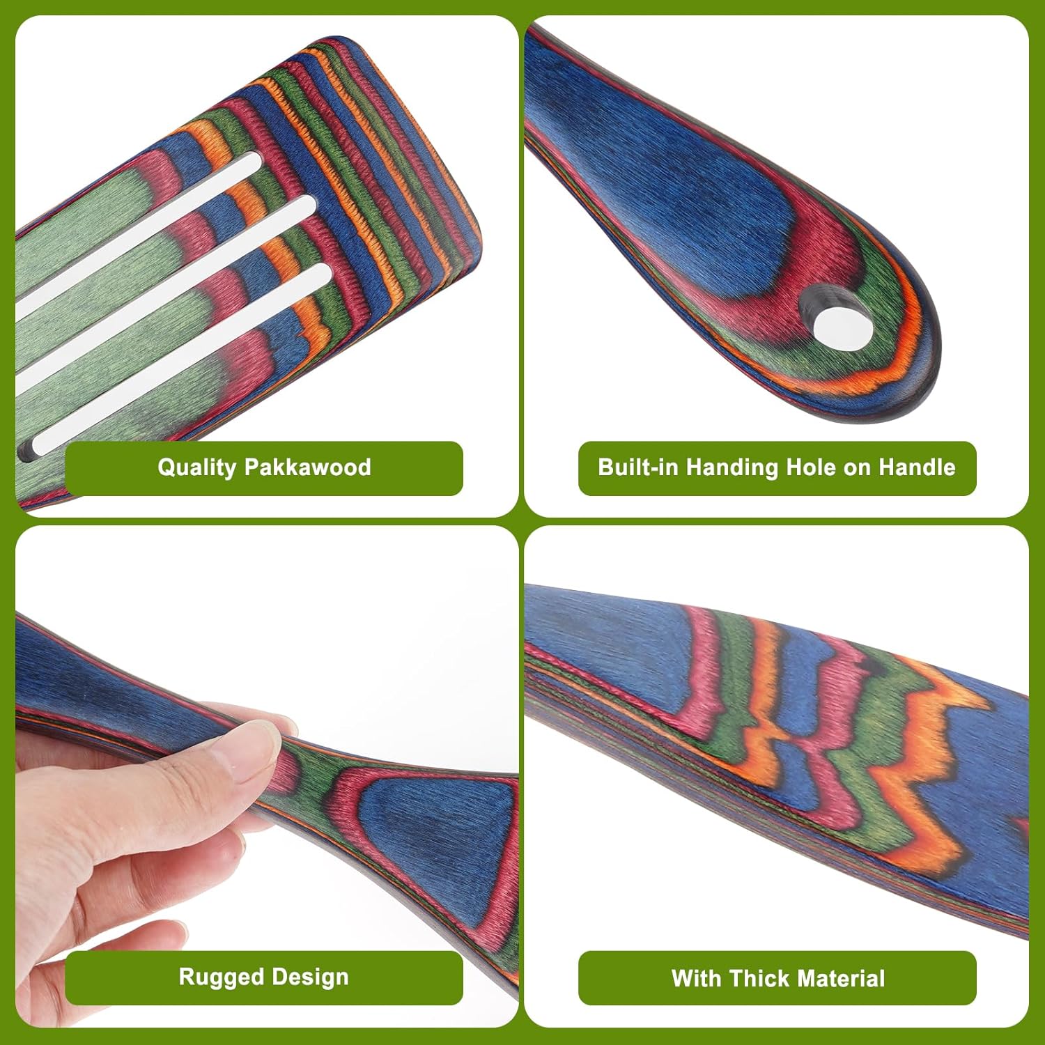 【Pakkawood Kitchen Utensils Set】Crafted from sturdy natural Pakkawood, our Spurtle set is highly heat-resistant and won’t easily deform. It’s non-toxic, BPA-free, and lacks harmful coatings, ensuring no leaching of chemicals into your food during cooking.