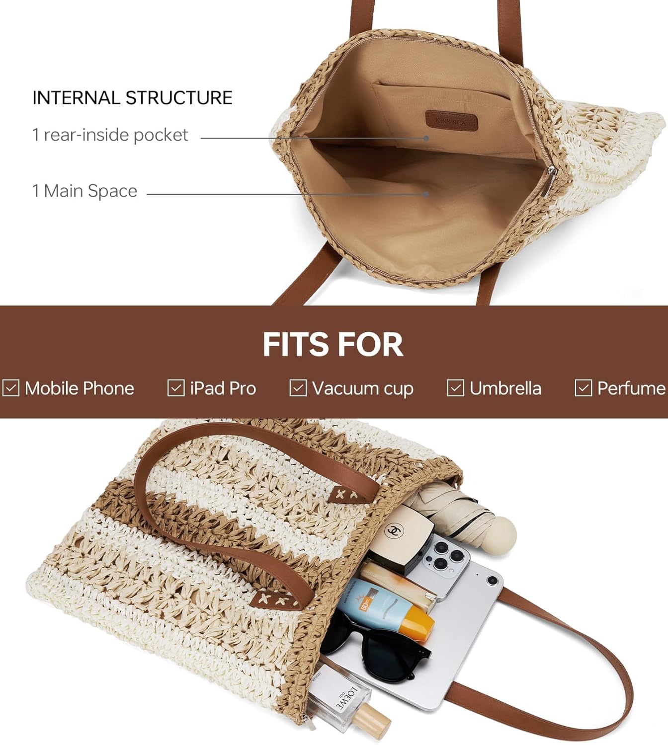 NALACAL Straw Bag Mesh Beach Bag The Tote Raffia Bag for Women Summer Beach Designer Hobo Purse Large Woven Women’s Handbags