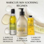 Maracujá Skin Hydration Regimen – 1. Form a protective layer on the skin with Maracujá Triple Phase Shower Oil. 2. Calm and moisturize skin with Maracujá Body Lotion. 3. Soothe hands for up to 24 hours with Maracujá Hand Cream.