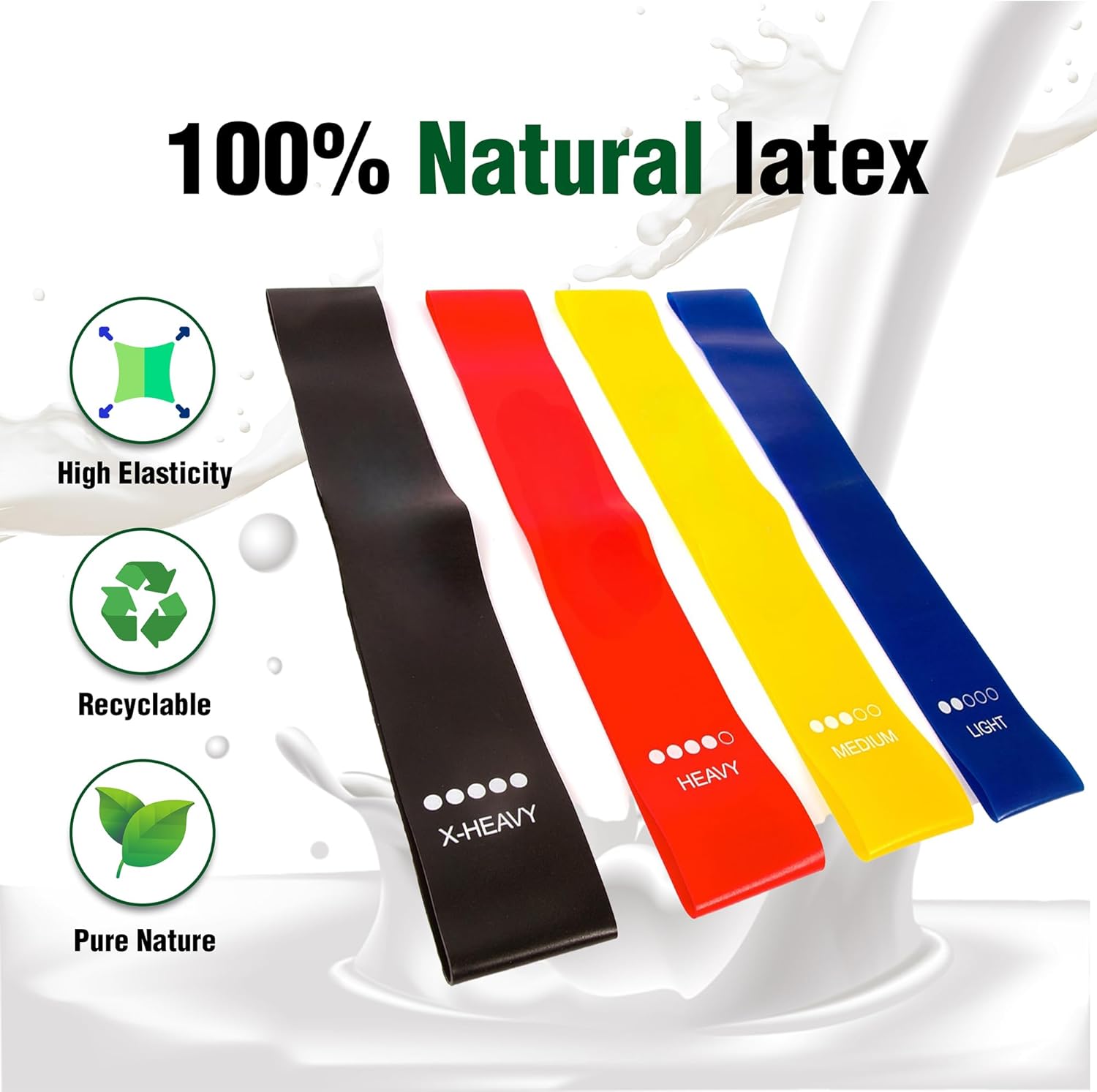 Natural Latex Resistance Bands Set – 4 Levels | Durable, Eco-Friendly, Versatile Fitness Solution for Strength Training, Rehab, and Mobility Elevate your fitness routine with our premium Natural Latex Resistance Bands, designed to deliver exceptional performance, durability, and comfort. Crafted from 100% natural, eco-friendly latex, these bands provide superior elasticity and long-lasting resistance without compromising on quality. Ideal for full-body workouts, rehabilitation, and mobility exercises, they are suitable for beginners, athletes, and professionals alike. ✅ Product Features Four Resistance Levels – Tailored to every stage of your fitness journey: - (Light) – - (Medium) – - (Heavy) – - (Extra Heavy) – High-Quality Natural Latex – Offers excellent durability, stretchability, and resistance to wear and tear Anti-Slip & Anti-Roll Design – Ensures bands stay in place during every movement Lightweight & Portable – Comes with a compact carry pouch for easy travel and storage Multi-Purpose Use – Suitable for strength training, physical therapy, yoga, Pilates, warm-ups, and post-injury recovery 🧘♂️ Whether you’re targeting glutes, legs, arms, or core, these resistance bands support a wide range of workouts and movement patterns. Their flexible yet firm resistance helps enhance muscle activation while reducing the risk of injury. 🎁 What’s Included 4 color-coded resistance bands 1 storage pouch 1 exercise guide