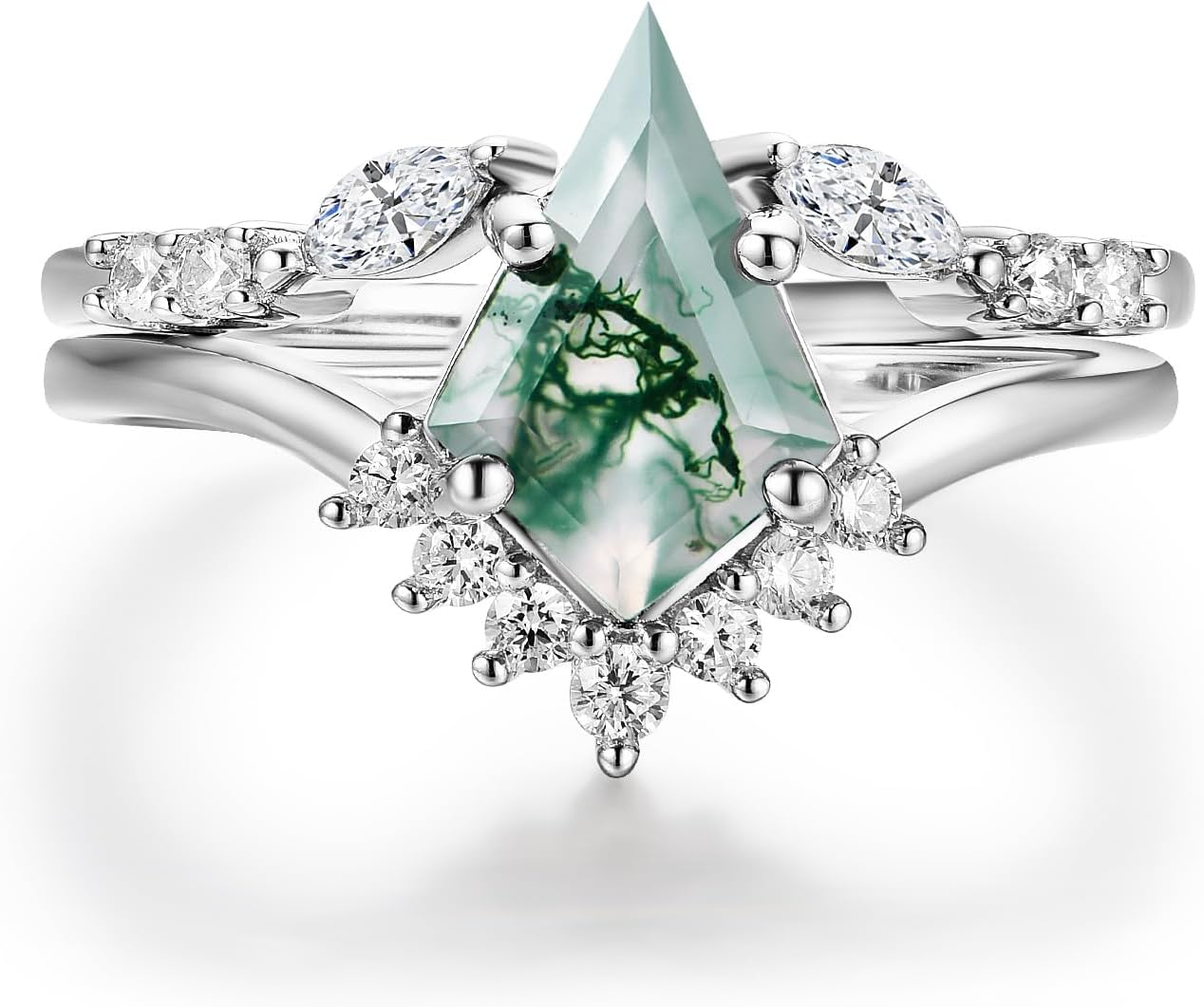 Natural Moss Agate Gemstone for Women’s Ring Genuine 925 Sterling Silver Kite Ring Set for Women