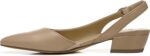 To-the-point. Slip on this elegant and tasteful flat for an extra dash of femininity. Leather, suede or fabric upper. Pointed toe. Sling back strap with buckle closure. N5 contour technology. Non-slip outsole. 1 1/4 inch block heel.