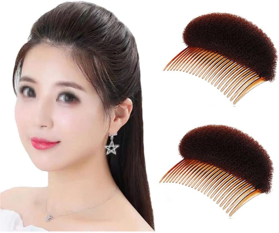 NATUWORLD 2Pcs Charming Bump It Up Volume Inserts Hair Comb Do Beehive Hair Styling Insert Tool Hair Stick Bun Maker Tool Hair Styling Accessories for Women Lady Girl (Brown)