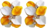 Navachi 18k Gold Plated Crystal Pink Yellow Enamel Leaves Flower Az2008e Omega Earrings