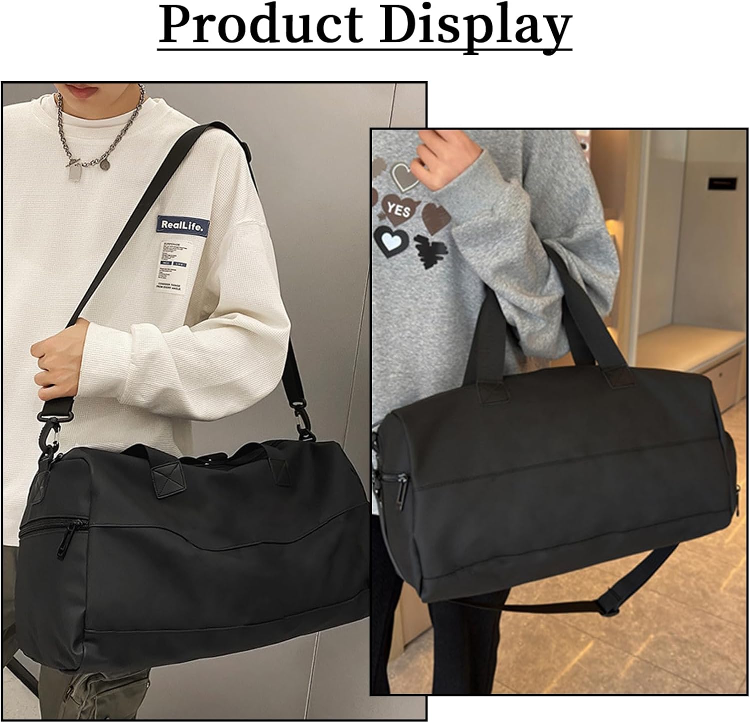 With dual carrying options, you can easily adjust your carrying style to suit your day. The shoulder strap is removable, can be used as crossbody bag, messenger bag, tote, handbag, gym sport bag, luggage bag, travel duffel bag, travel holdall bag, carry on bag, workout bag, dance bag.