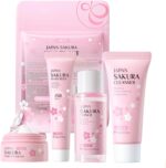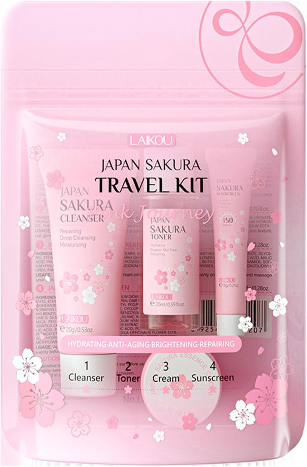 New Irven Sakura Travel Skincare Set for Teenage Girls – Face Routine Set for Women,4 Piece Gentle Skin Cleaning & Care Travel Size Kit With Cleanser, Toner, sunscreen and Face Cream