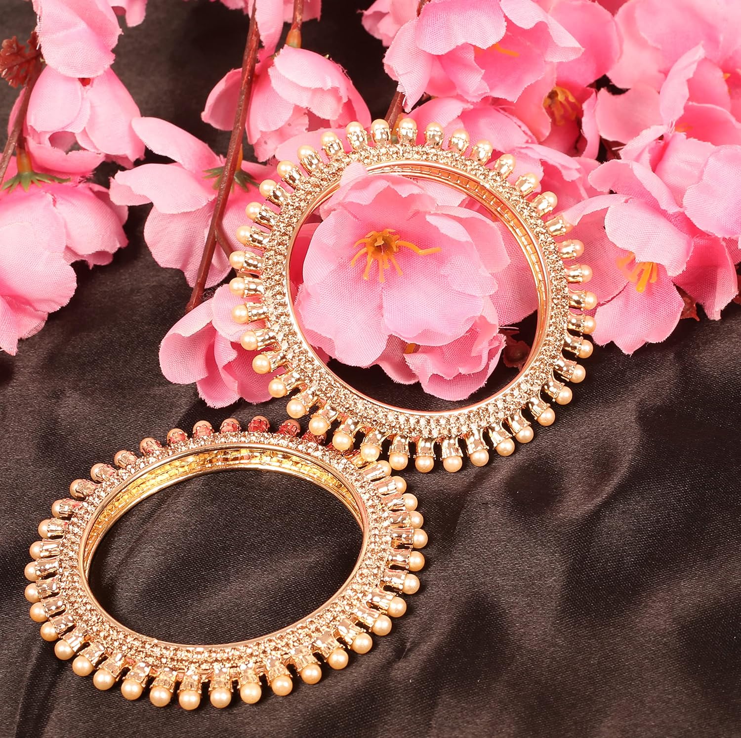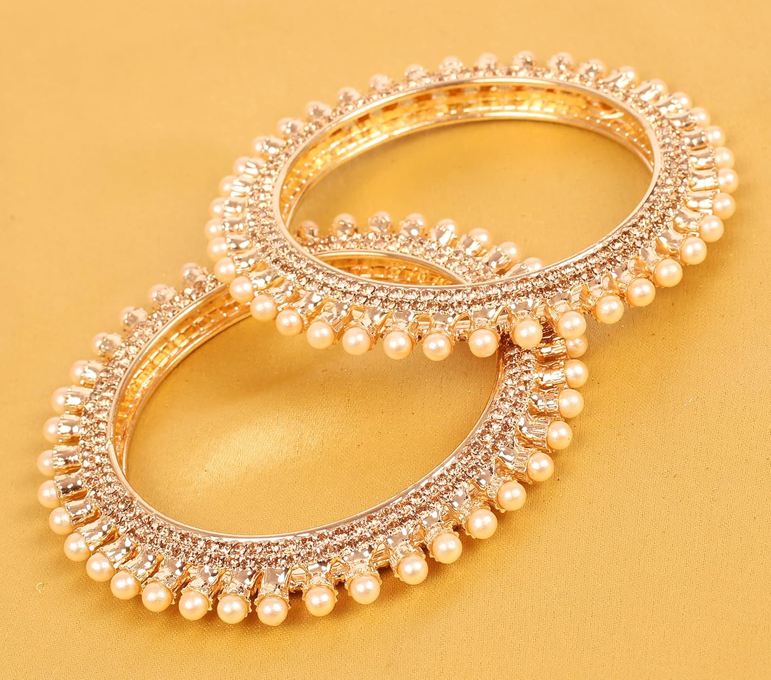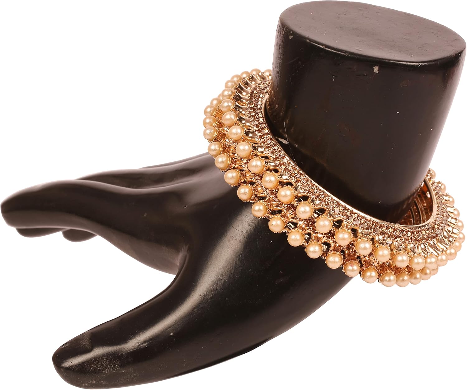 NEW! Touchstone ‘Pearl Bangle Collection’. Indian Bollywood Traditional And Exclusive Thin Designer Jewelry Bangle Bracelets Embellished With Faux Pearls. In Antique Gold Tone For Women.
