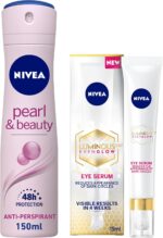 NIVEA Antiperspirant Spray for Women, Pearl & Beauty Pearl Extracts, 150ml + NIVEA Eye Serum, LUMINOUS 630 EVEN GLOW Reduces Appearance of Dark Circles, 15ml