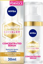 PATENTED LUMINOUS630: NIVEA LUMINOUS630 Even Glow Concentrated Face Serum acts on existing dark spots and blemishes and helps lighten them.
