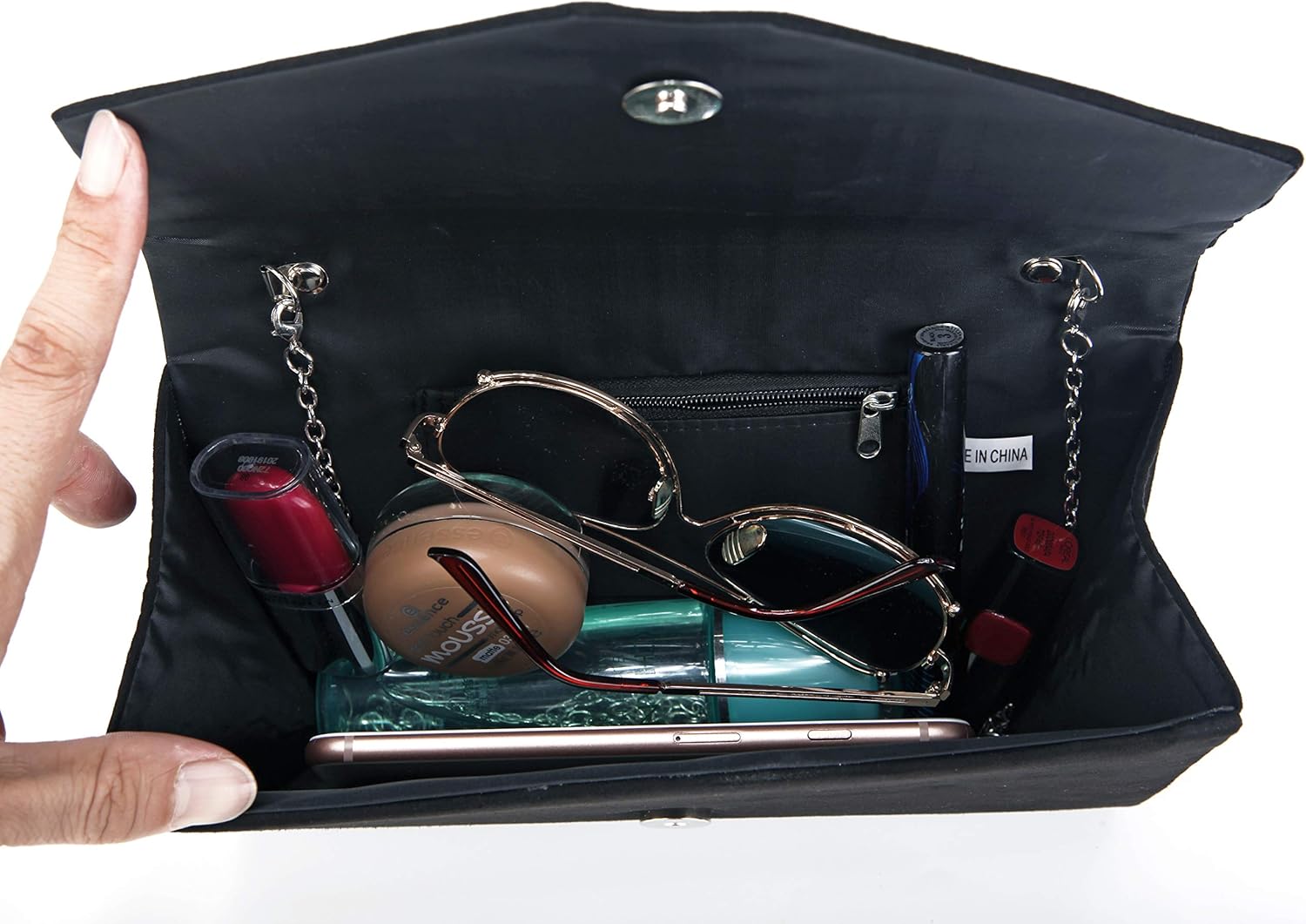 ★ This cute elegant evening bag has a spacious inside space, it is big enough for your mini wallet, lipstick, sunglasses, keys, cell phone and the divider where you can keep your phone. You can assured hold your credit card and cash in the inner zipper pocket.