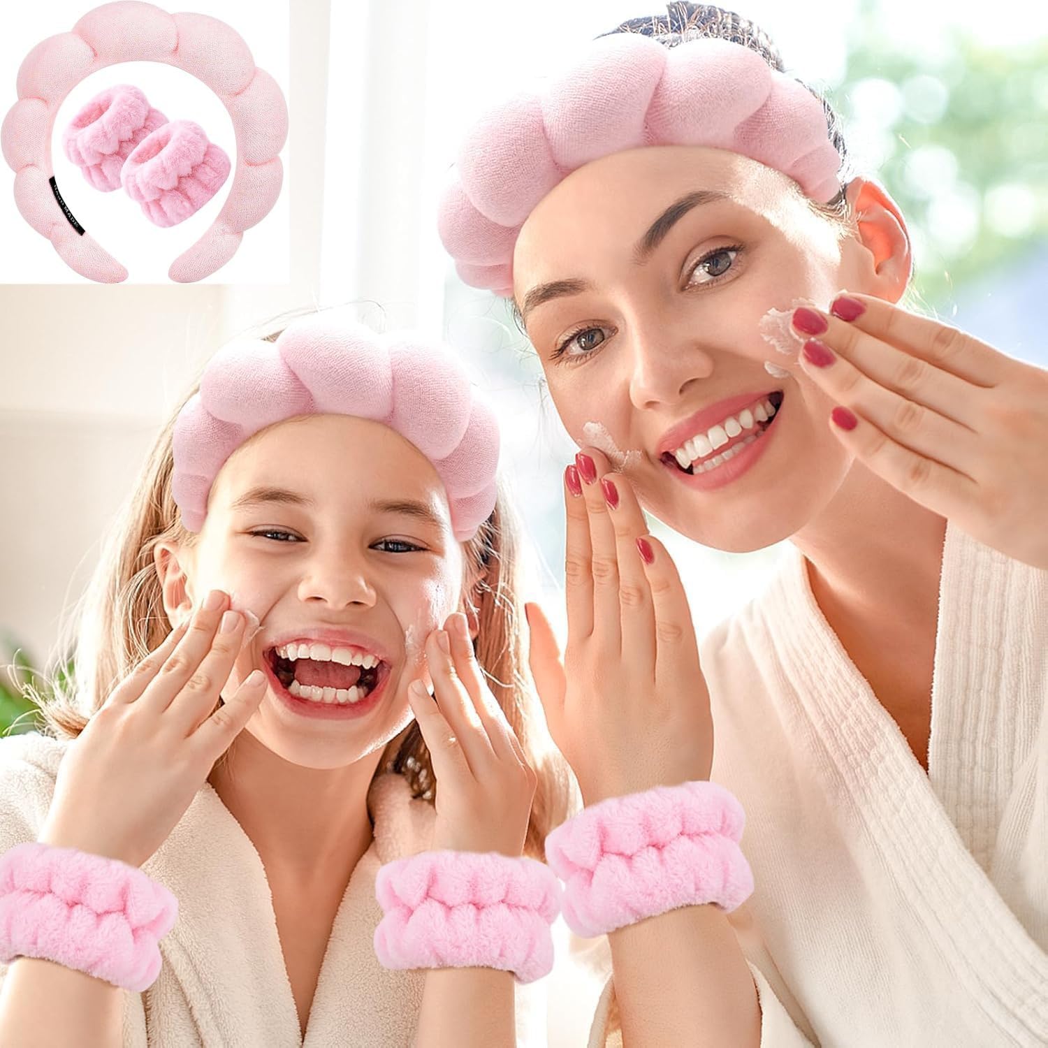 SPA HEADBAND AND WRISTBAND MATERIAL: Spa headband and wristband set is the perfect solution.Bubble Spa headband for women the sponge lining used and the terry cloth covering the surface. These skincare headbands have a grwm water absorption function and can be used when you are washing your face, skincare or makeup. The wristbands are made of quality coral fleece.