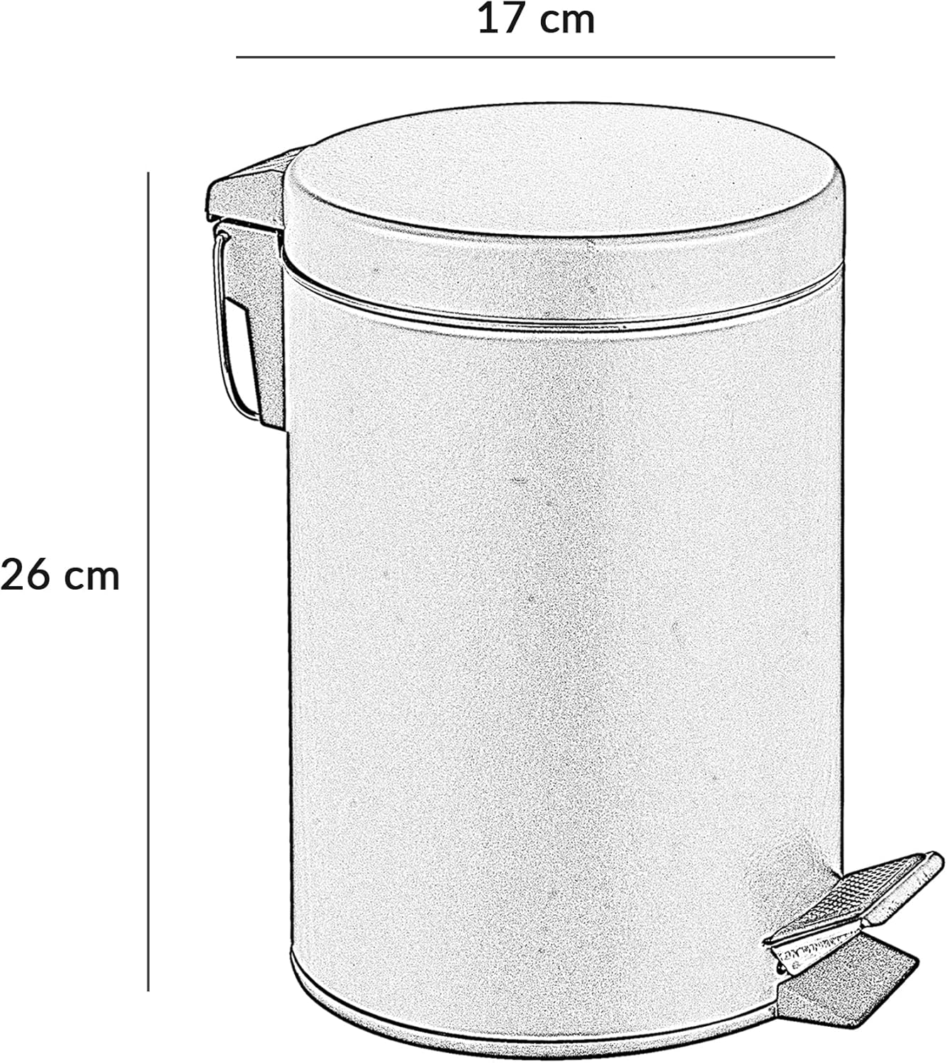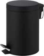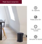 Innoteck Essentials Round Colour Coated Pedal Bin 3L Dustbin Size 26x17cm for Kitchen and bathroom, Matt Black