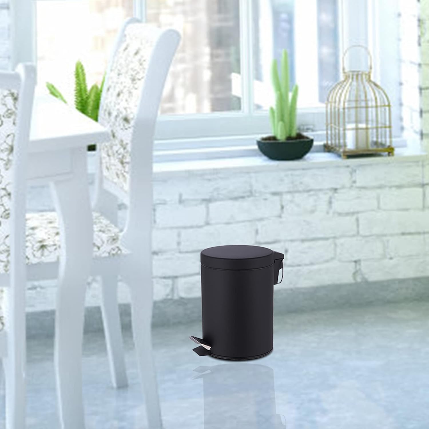 This Pedal bin is made of high quality matt black colour coated metal material. Durable and 3Liter capacity is an ideal size to fit in any kitchen and bathroom corner.
