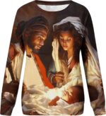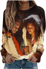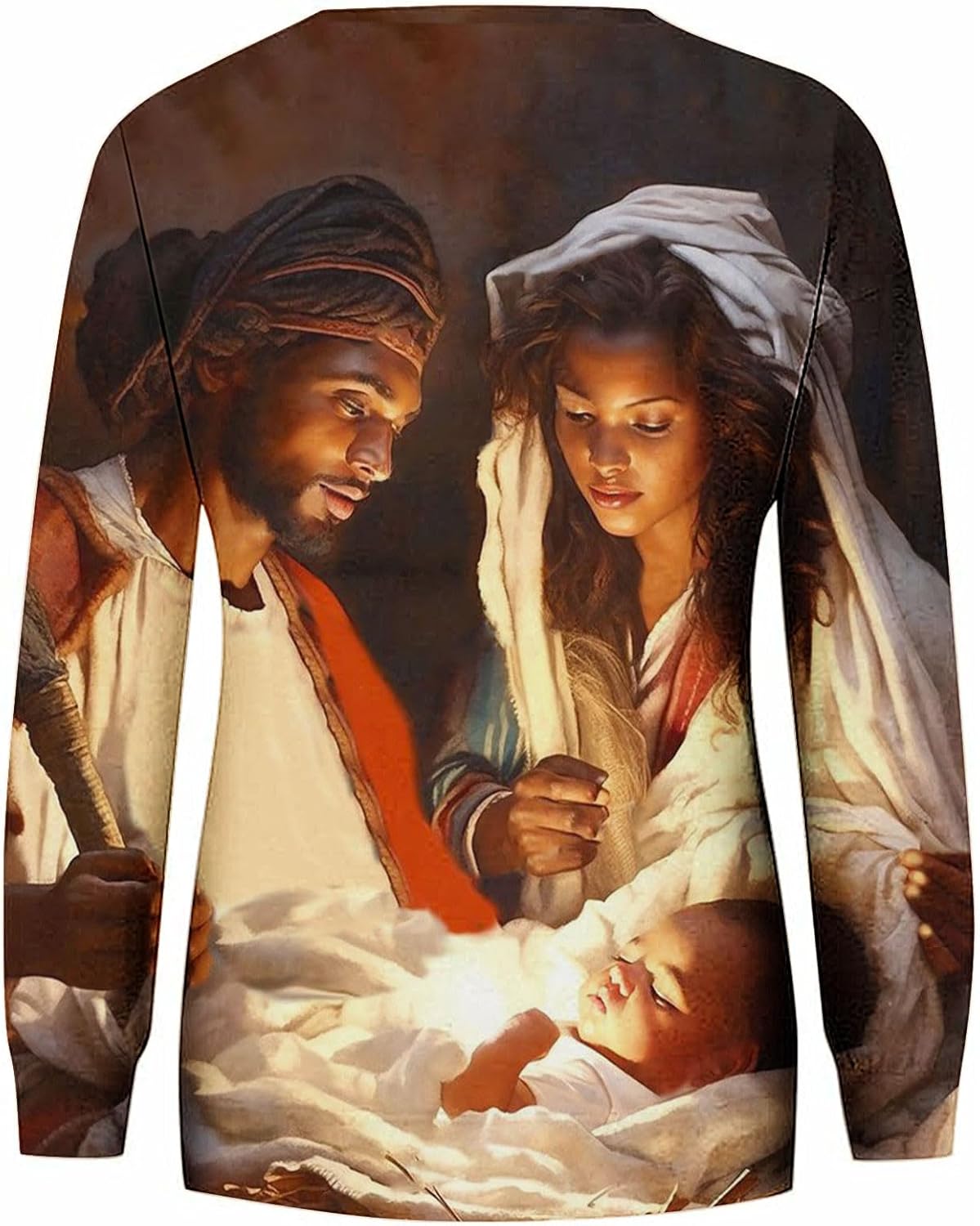 NSICBMNO Womens Christmas Jumpers Plus Size Oversized Sweatshirt Nativity Christmas Jumper Long Sleeve Crew Neck Tops Jesus Birthday Jumper Novelty Xmas Sweatshirt Ladies Pullover Tops
