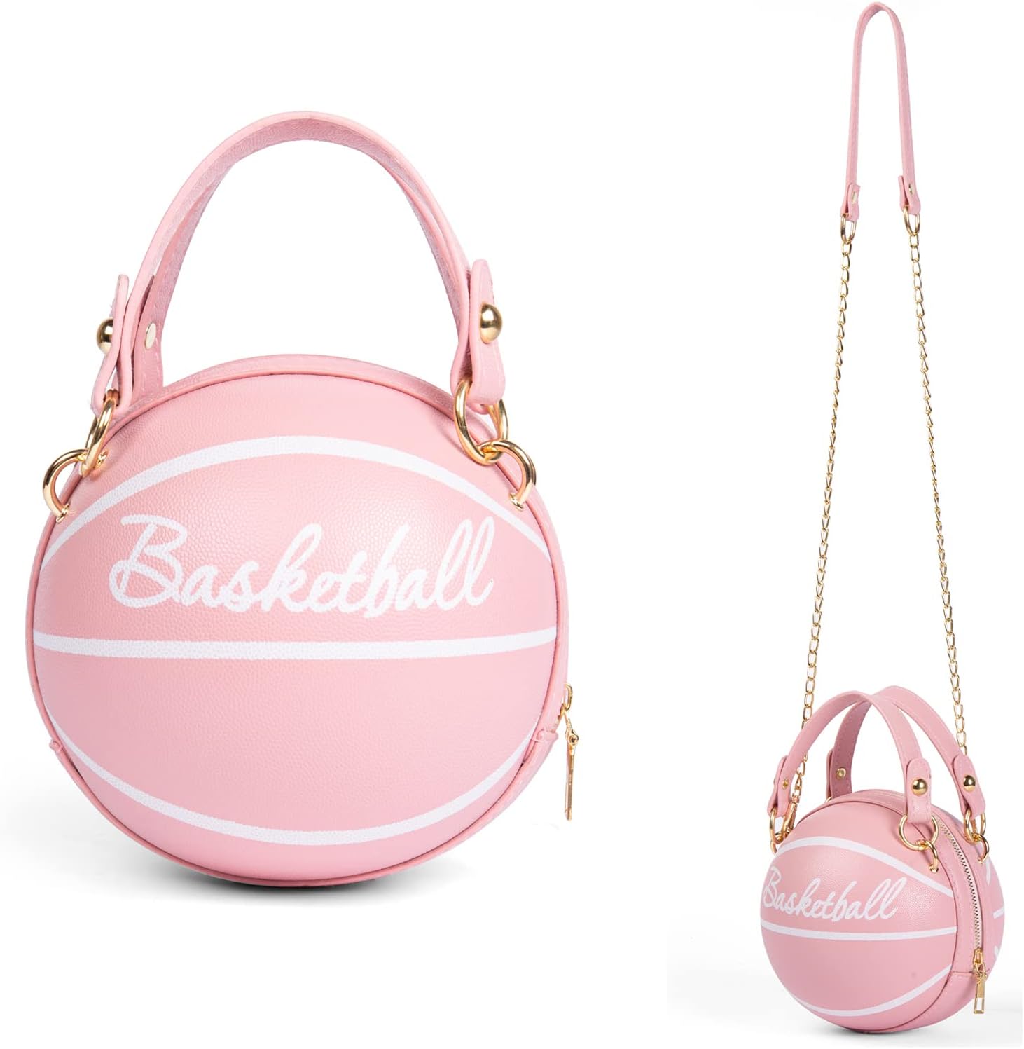 Obovoid Women’s Basketball Bag Basketball-Shaped Crossbody Bag Handbag Girl Mini One-Shoulder PU Leather Round Handbag…