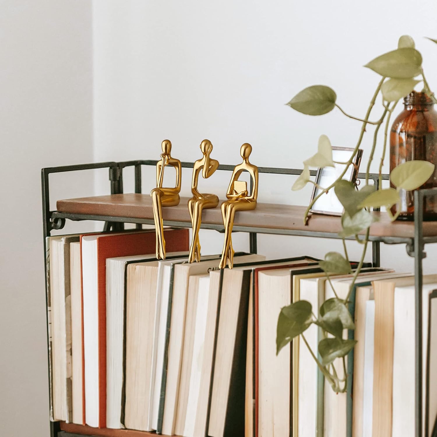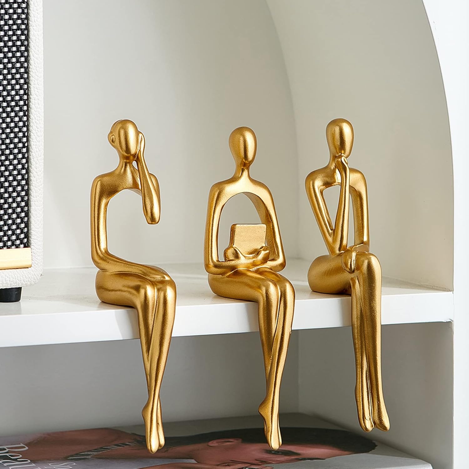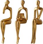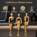 Octdays Gold Thinker Statue Sculpture – Abstract Figurines Set of 3 for Modern Home Decor, Living Room Mantel, Bookshelf Accents, Study Shelf and Office Desk Decorations