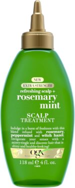 OGX Extra Strength Refreshing Scalp + Rosemary Mint Dry Scalp Treatment, Refreshing Scalp Treatment to Help Remove Buildup, Minty Leave-In Treatment for Shiny Hair, 4 fl. oz