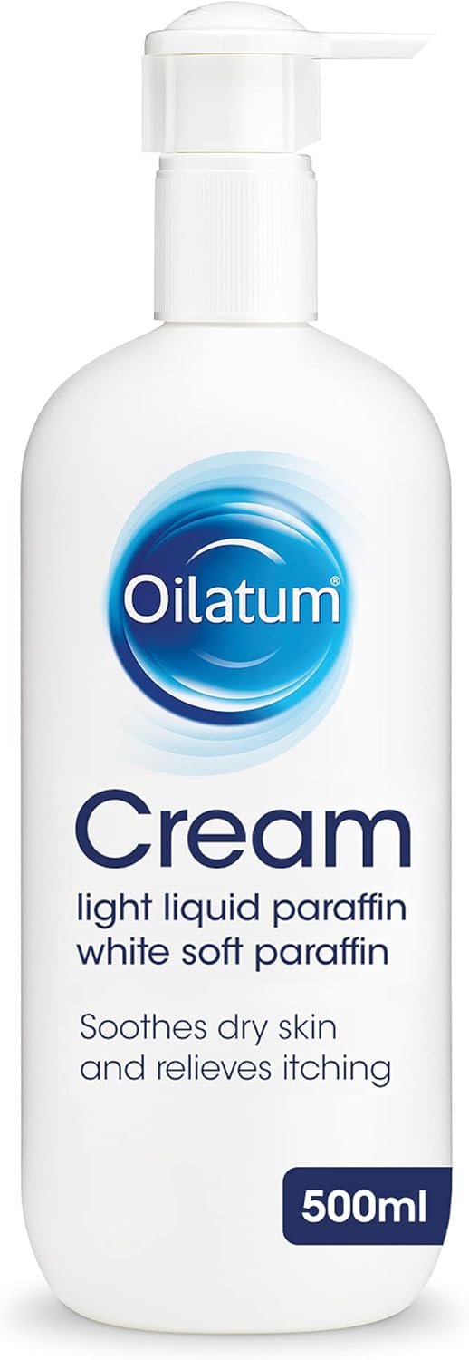 Product Description: Treat your eczema with Oilatum Cream, specially developed for the treatment of eczema and related dry skin conditions. This effective cream is an emollient (softening, soothing agent) that forms a protective film to moisturise, soften and rehydrate the skin. If you are suffering with eczema and related dry skin conditions, Oilatum cream provides relief for your skins needs. It soothes, softens and rehydrates, whilst also relieving itching. Oilatum cream is fragrance free and suitable for daily use on adults, children and the elderly, with eczema and related dry skin conditions. Directions: Apply daily to the affected areas. For best results, we recommend Oilatum cream is especially effective if applied to the skin immediately after washing, to counteract the loss of essential oils from the skin. It can be used as often as required. Product size options: Available in 500ml and 150g sizes, making it easy to choose the perfect size for your needs. Whether you are looking for a small size for travel, or a larger bottle for frequent daily use, Oilatum has you covered. Oilatum has been trusted for 50 years by families to relieve dry and eczema-prone skin. Known for its products that provide relief and hydration for dry and itchy skin conditions such as eczema. Oilatum products are expertly formulated to soothe and hydrate, offering comfort and protection. Discover Oilatum and let your skin experience the soothing protection it deserves. Ideal for sensitive skin, Oilatum’s gentle formulations address dryness and irritation with ease and confidence. People around the globe use Oilatum for its ability to deliver hydration and relief, establishing it as a staple in personal and family skincare regimens. Ingredients: Active ingredients: Light Liquid Paraffin 6.0% w/w and White Soft Paraffin 15.0% w/w. Other ingredients: Macrogol 1000 Monostearate, Cetostearyl Alcohol, Glycerol, Potassium Sorbate, Benzyl Alcohol (0.5%w/w), Citric Acid Monohydrate, Povidone, Purified Water. Oilatum Cream (white soft paraffin, light liquid paraffin) is a medicine to treat eczema and related dry skin conditions. Always read the label.