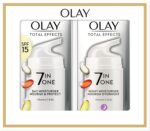 Olay Total Effects Anti-Ageing 7in1 Gift Set contains: Day Moisturiser With SPF15 37ml and Night Firming Moisturiser 37ml. Olay Total Effects 7in1 Day and Night Moisturisers collection fights the 7 signs of ageing for a radiant and fabulous skin. It’s Olay’s simple, smart approach for youthful, healthier looking skin that can better stand the test of time. It gives 7 skin benefits in one product: 1. Reduces the appearance of wrinkles 2. Moisturises 3. Evens skin tone 4. Refines look of pores 5. Smoothes the texture of the skin 6. Brightens 7. Helps to restore skin’s firmness. It contains Niacinamide and Antioxidants, Olay Total Effects Cream exfoliates to enhance skin’s surface natural self-renewal process for healthier looking skin. Its non-greasy, fast absorbing formula will not clog the pores of the skin. Day Cream contains SPF 15.