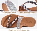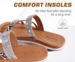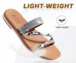 ONCAI Women’s Flat Sandals Summer Dressy Casual Sandals Women Fashion Rhinestone Square Toe Slip On Ladies Slides Comfortable Cushion Footbed Beach Flat Sandal For Woman Size 6-11