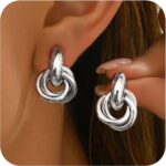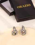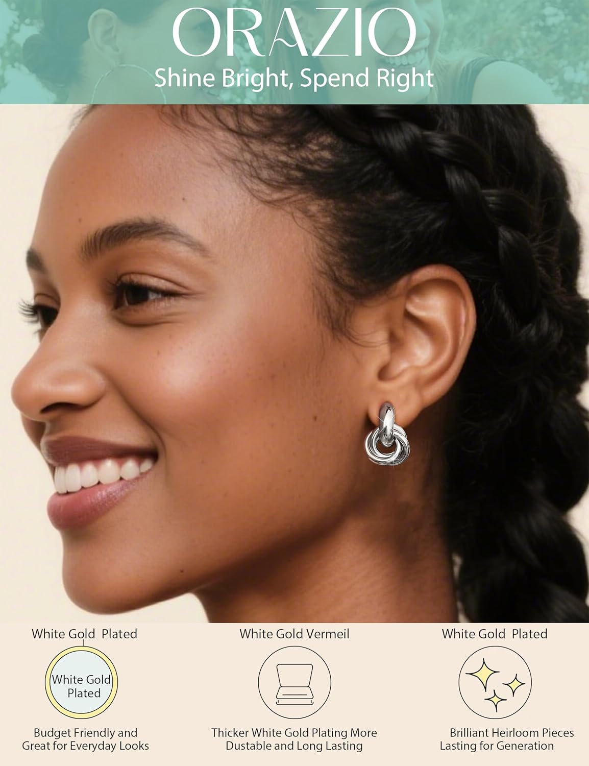 ORAZIO Chunky Gold Plated Knot Earrings for Womens Trendy 925 Silver Statement Lightweight Dangle Drop Hypoallergenic Large Geometric Stud Earring Jewelry for Women