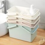 【Bathroom Caddy Large capacity】: can simultaneously store bathroom products such as towel, bath ball, mouthwash cup, contain many bath supplies like shampoo, soap, sponge, body wash, cream razor, washcloth, loofah sponge shower gel and facial cleanser. can be placed in the dorm, bathroom, toilet, under sink storage, kitchen to make your space neat