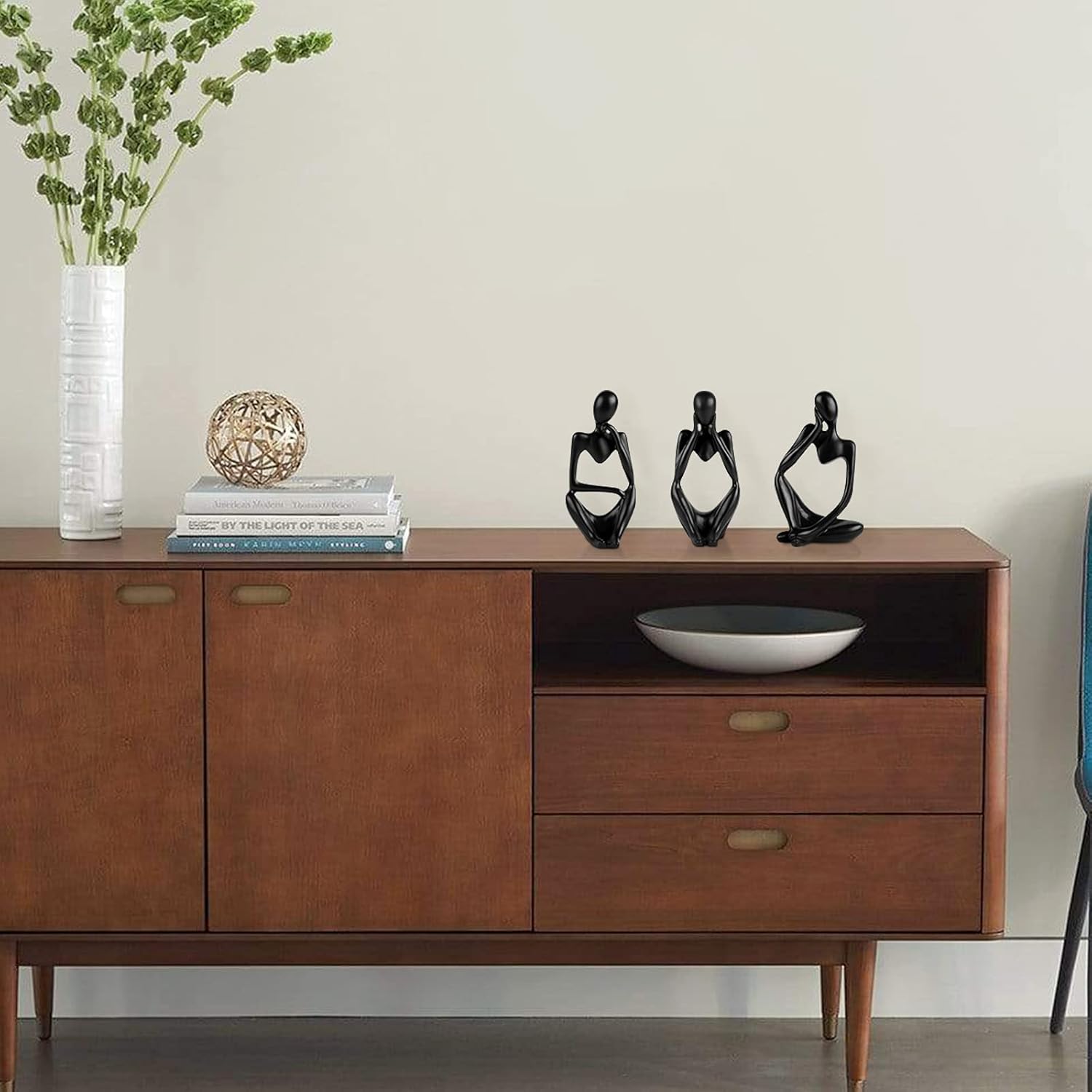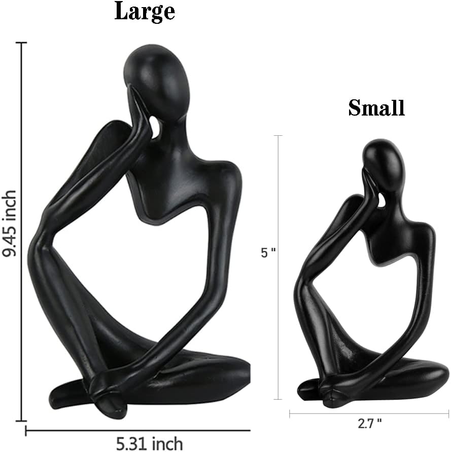 Ozzptuu Abstract Sculpture The Thinker Statue Resin Statues for Home Decor Modern Home Office Desktop Shelf Bookshelf Decor Set of 3 (Small-Black)