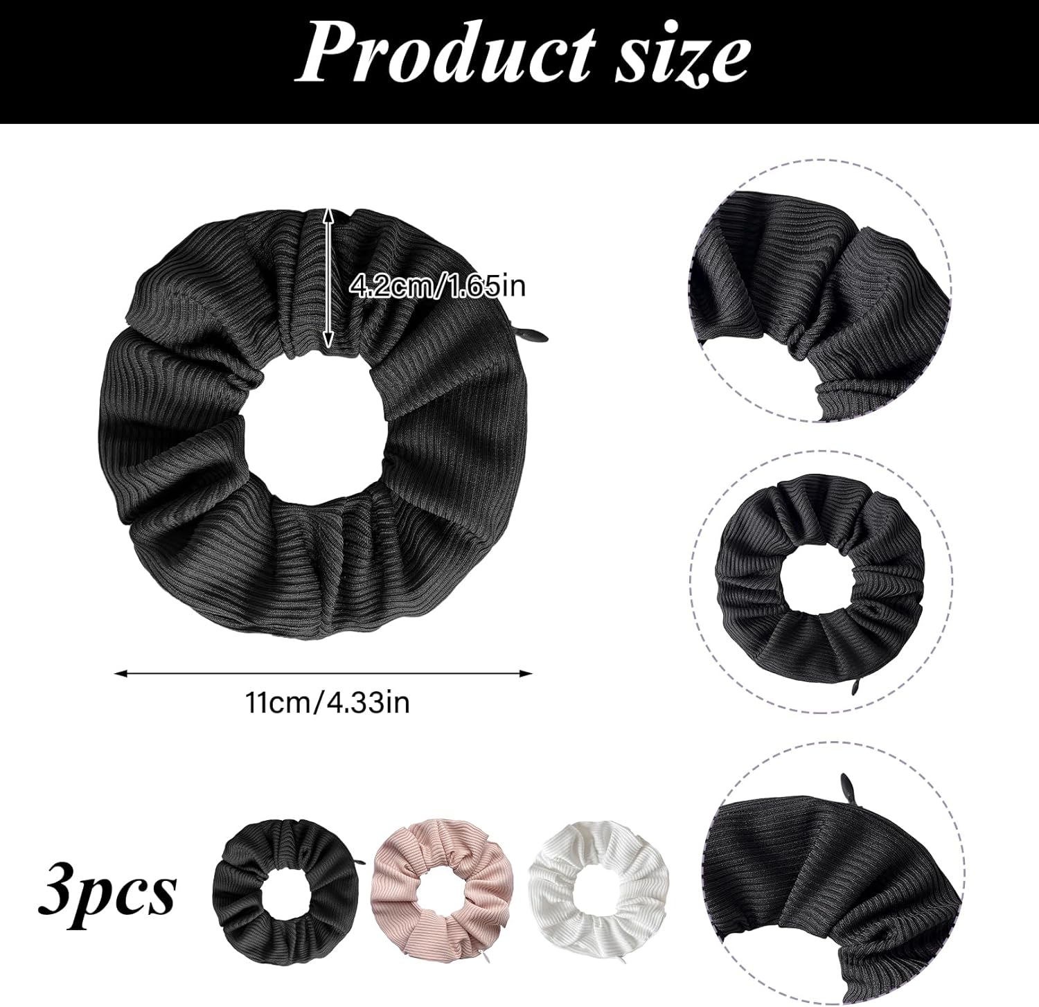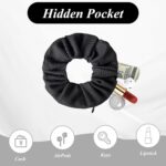 Pack of 3 Women’s Hair Bobbles, Money Hide with Zip Pocket, Striped Knit Hair Rings, Travel Gadgets for Women, Can Store Valuables (Black, White, Pink)