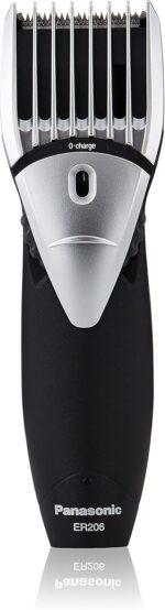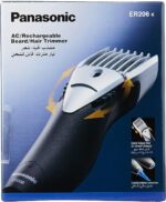 The compactly designed, high performing Panasonic ER206 trimmer is ideal for trimming of beard and hair. Battery operated trimmer gives you 12 cutting length options, with sharp blades for greater precision. The comfortable grip of the trimmer enables easy maneuvering and you can style your hair in combination with a comb or fingers. The Panasonic trimmer gives you a precise cutting experience for a perfect and well-groomed look.Men’s Trimmer.Easy adjustments with quick adjust dial (2-18/12 steps).Soft case; brush; oil; comb attachment.1 hour charge/40 min use.