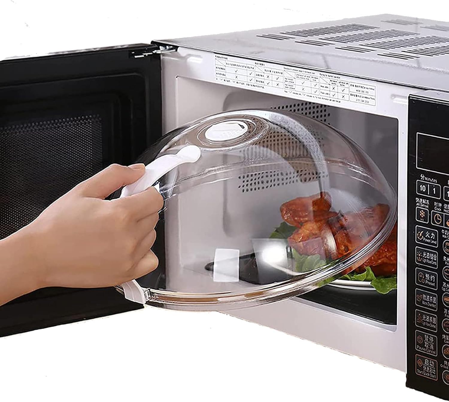🥗【Transparent Microwave Cover】New upgrade microwave lid, It is easy to see thru when using, transparent like glass, but lighter and stronger than glass, grip design easy to hold and hook design for easy storage.