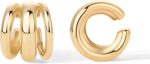 PAVOI 14K Gold Plated Chunky Ear Cuff Earrings for Women – Triple Cuff Statement Earrings