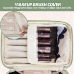 PawPawU Makeup Bag for Women, Vegan Leather Waterproof Travel Cosmetic and Toiletry Organizer with Handle, Multi – Compartments for Makeups, Brushes, Skincare (Green)