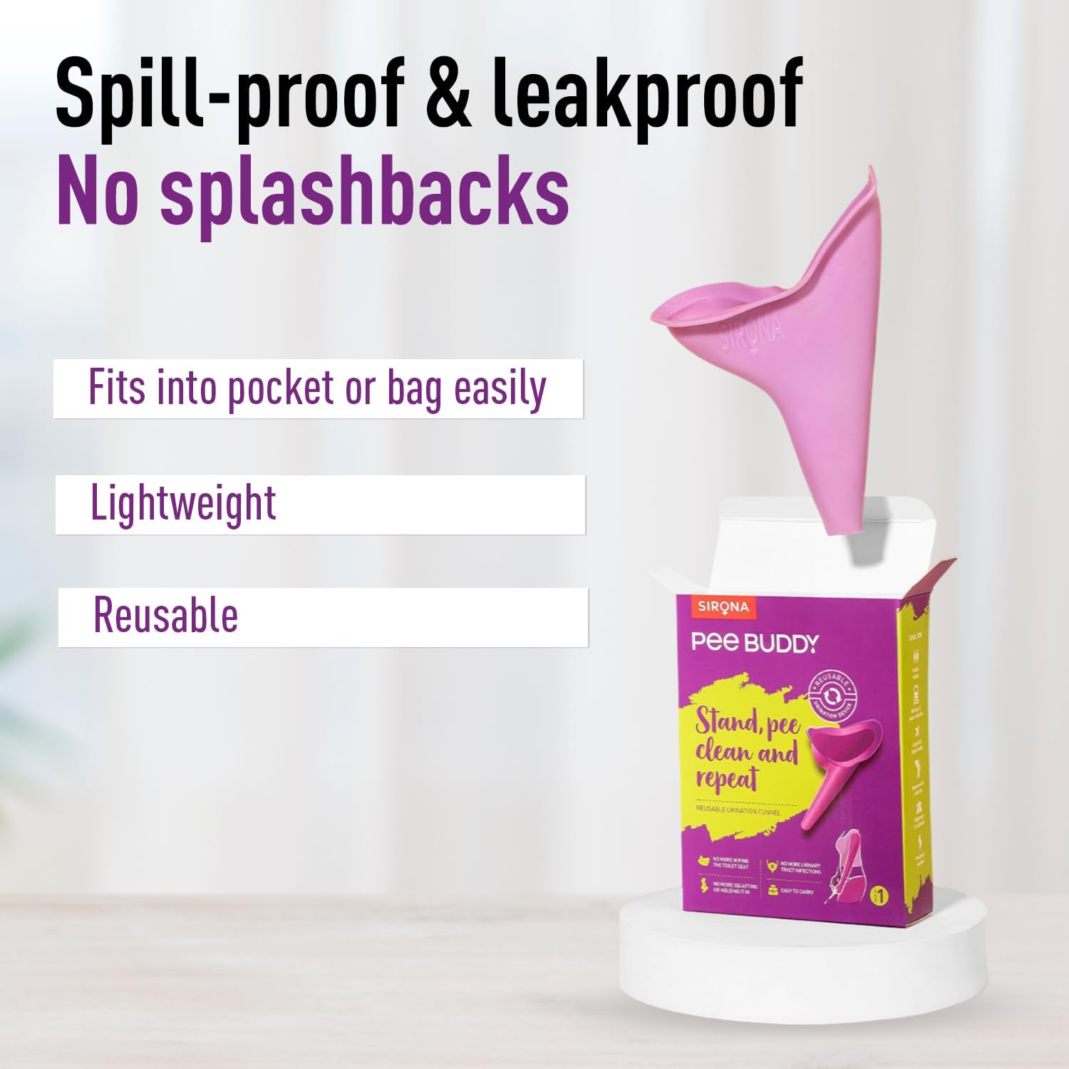 BATHROOM SOLUTION: Discreet, reusable, funnel-shaped urination device that enables women to go anywhere – concerts, road trips, camping and more; no more crouching or wiping. Urinate while standing up without taking off your clothing.