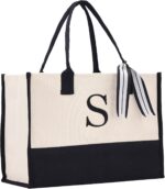 Personalized Gift Monogram Initial 100% Cotton Chic Tote Bag with Customize Option – Black