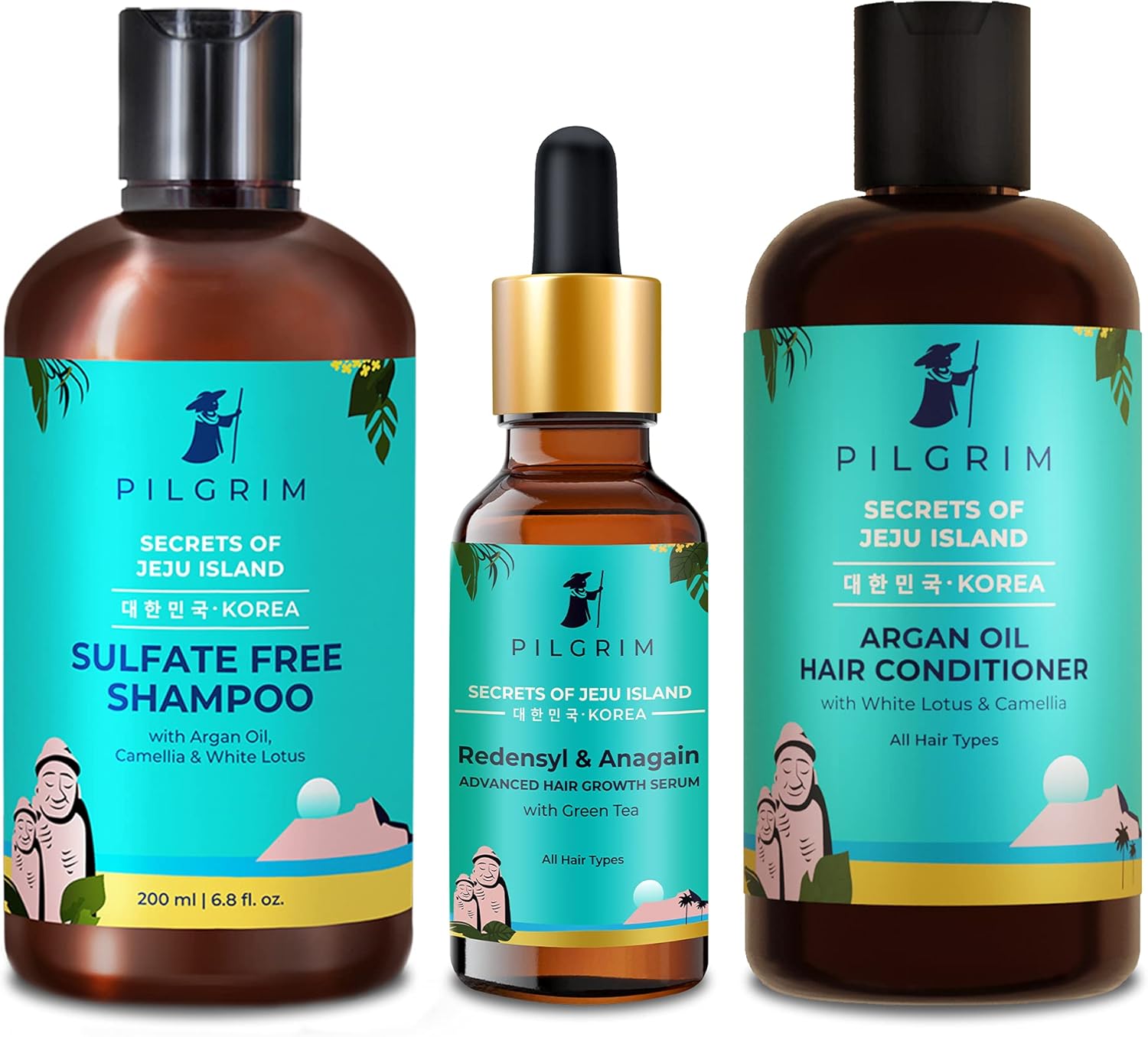 PILGRIM Korean Advanced Hair Growth Regime | Redensyl 3% & Anagain 4% Hair Serum 50ml,Sulphate-Free Shampoo 200ml & Hair Conditioner 200ml | For All Hair Types | For Men & Women