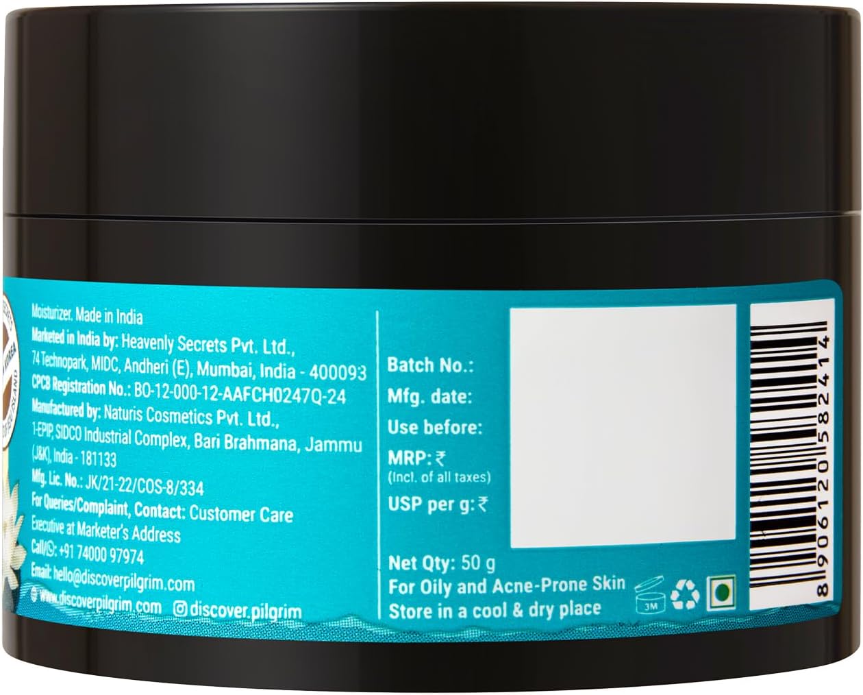 Pilgrim Korean Oil free Gel Moisturizer for oily skin with Hyaluronic Acid & Willow Bark Extracts | Moisturiser for face | Suitable for Oily & Acne-Prone Skin| Men & Women | Korean Skin Care | 50gm