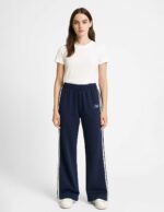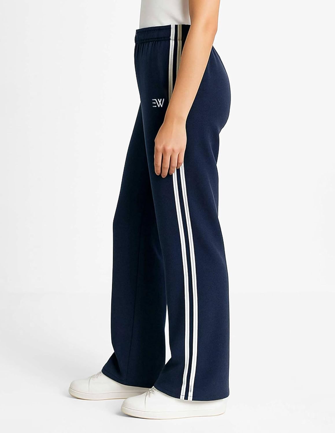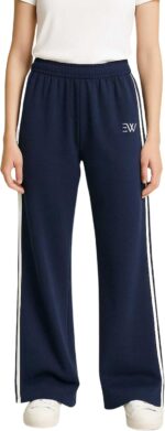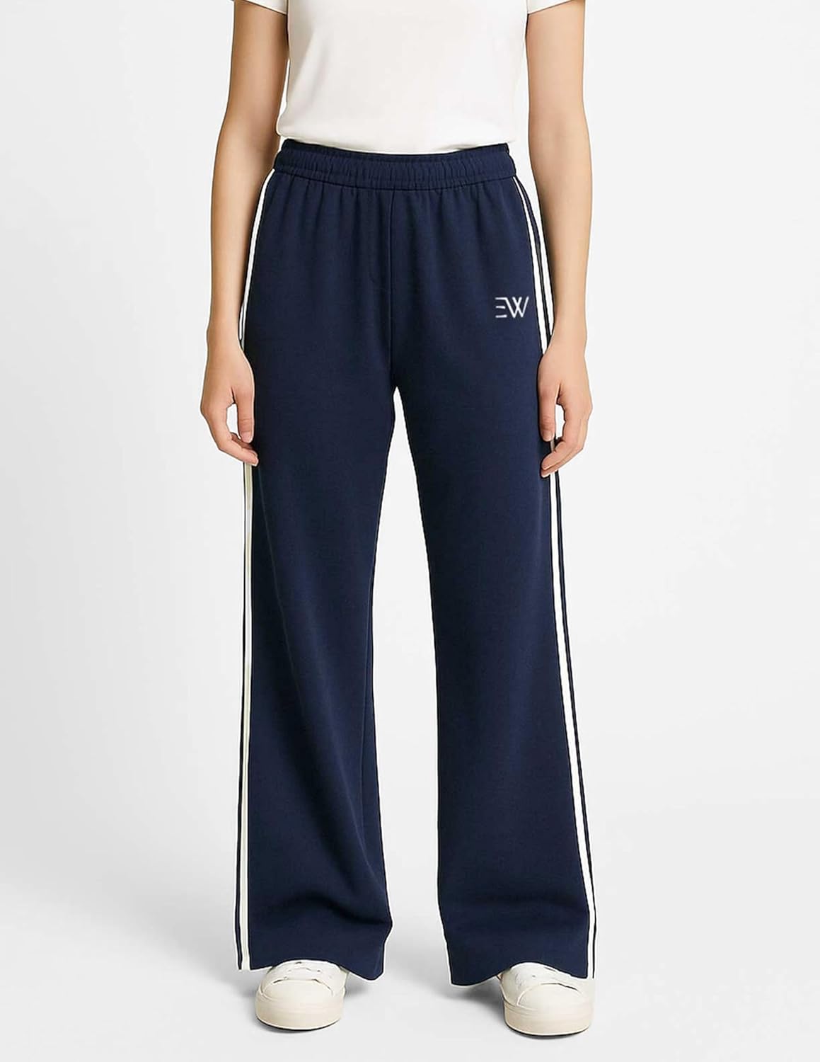 Step into casual comfort with these Loose fit sweatpants, tailored for effortless style and all-day ease. Designed with a relaxed fit and classic navy color, these pants feature sleek white side stripes for a sporty edge. The elastic waistband ensures a snug, flexible fit, while the soft fabric drapes beautifully for a flattering silhouette, perfect for lounging, errands, or casual outings
