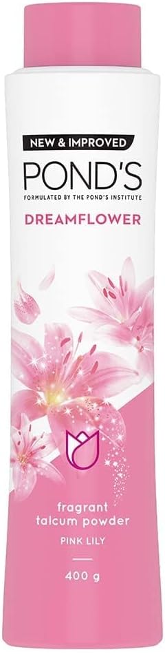 Pond’s Dreamflower Fragrant Talcum Powder Pink Lily – Body Powder – Safe & Natural – Makes Skin Dry and Helps Prevent Rashes- 400 g