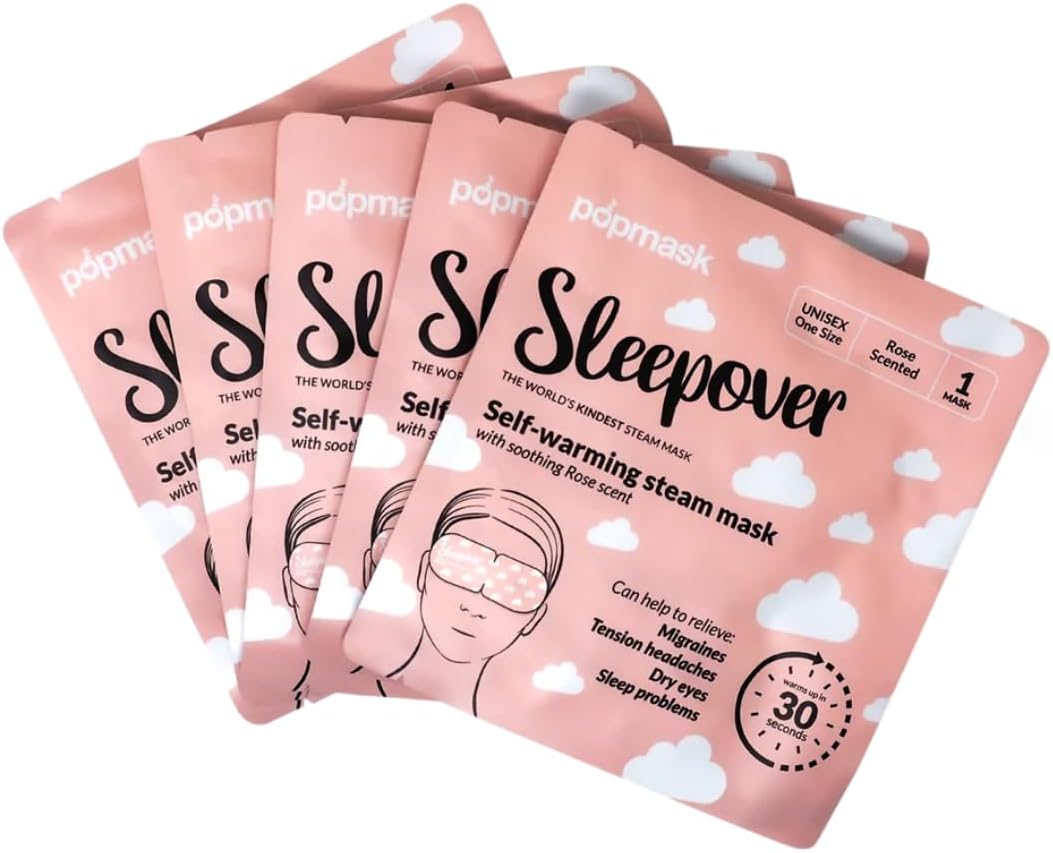 POPBAND Popmask Scented Self Heating Eye Mask for Sleeping – Warms In 30 Seconds, Natural Heat Source, Lasts For 20 Minutes – Pack of 5 ROSE Cotton Eye Masks With Ear Loops