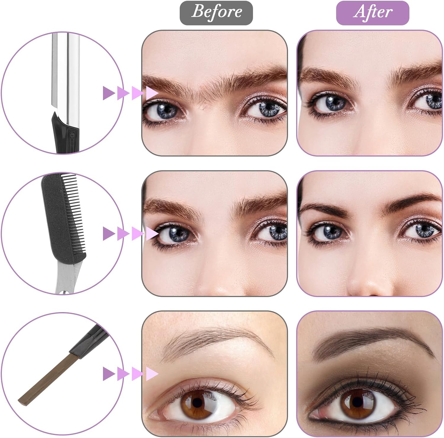 【Easy to Use】Just brush your brows first, then you can see which brows are too long and need to be cut, and the trimming scissors can easily trim your brows to create a perfect brow shape.