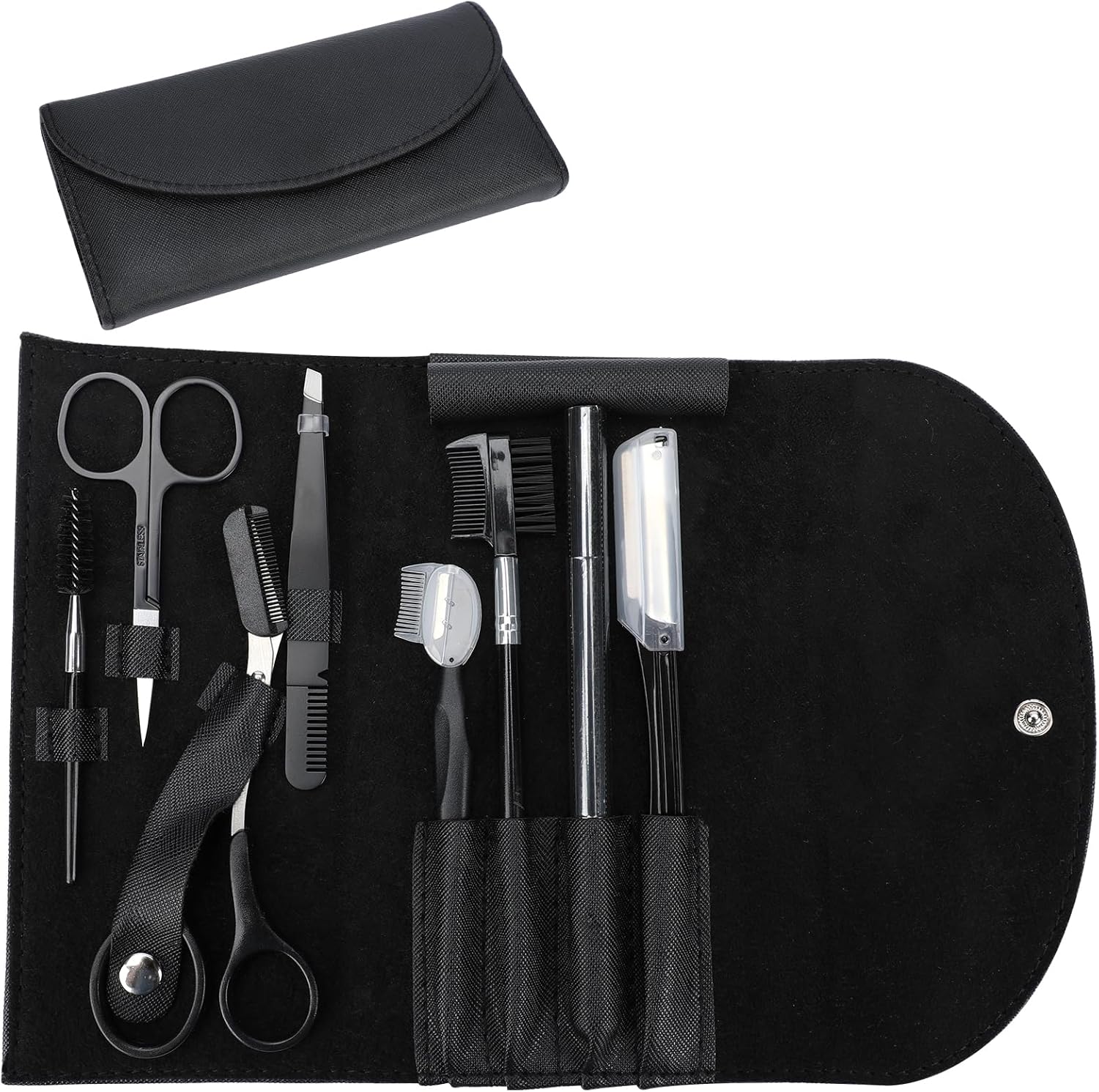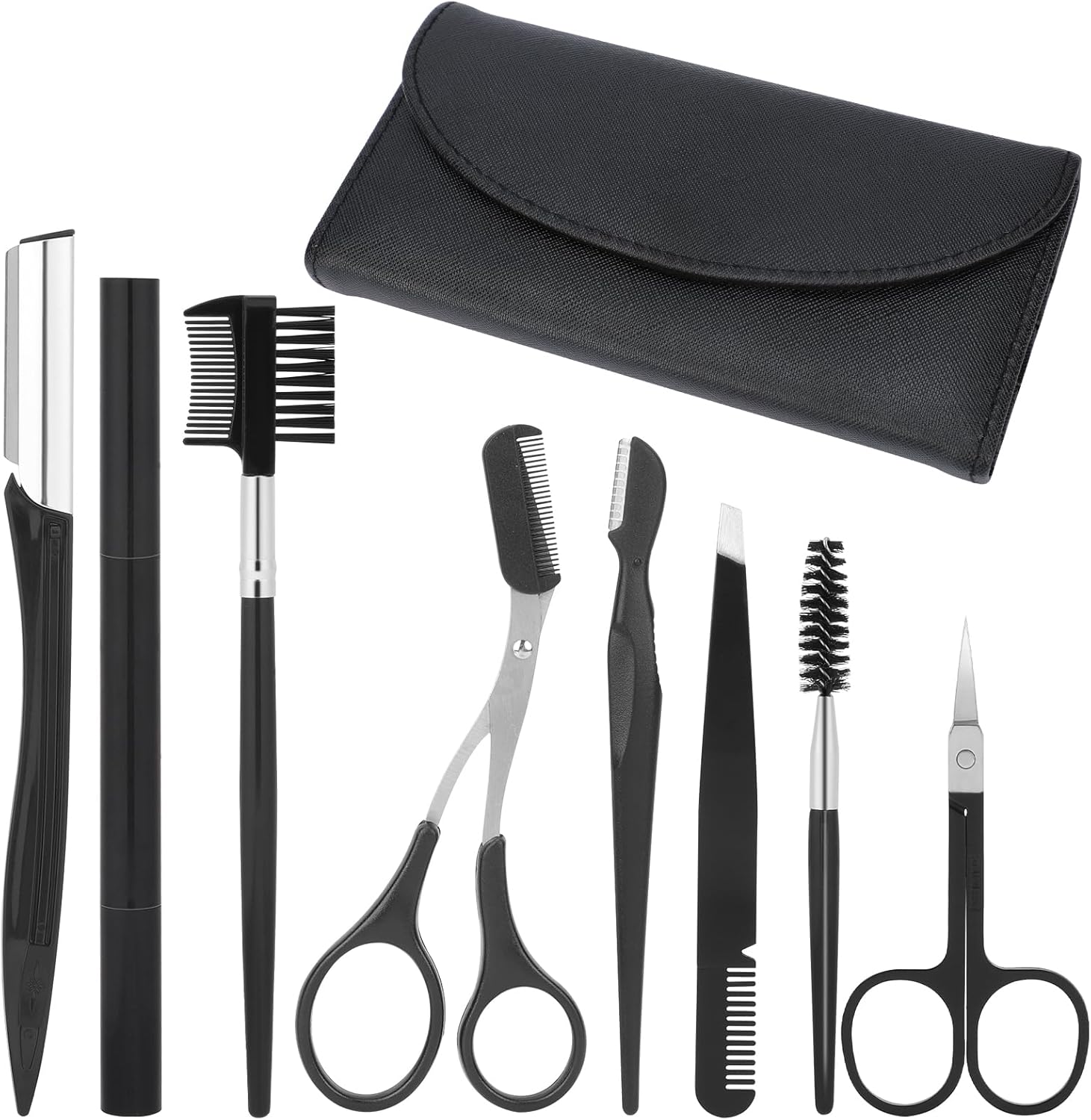 Professional Eyebrow Shaping Grooming Kit,8PCS/SET Eyebrow Grooming Kit with Leather Bag Eyebrow Trimming Kit With Razor Eyebrow Scissors Eyebrow Brush for Women & Men(Black)