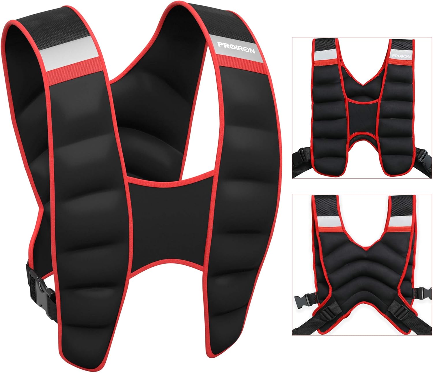 【Ergonomic design】 PROIRON weighted vest is upgraded than other weight vests on the market. U type neckline of weighted vest enhances the ventilation to reduce much sweat and pressure on your chest. Our weight vest is very comfortable to wear due to breathable fabric and multiple anti-slip soft padding, not only for optimum support and comfort but also for reducing slide at shoulder and back during exercise.